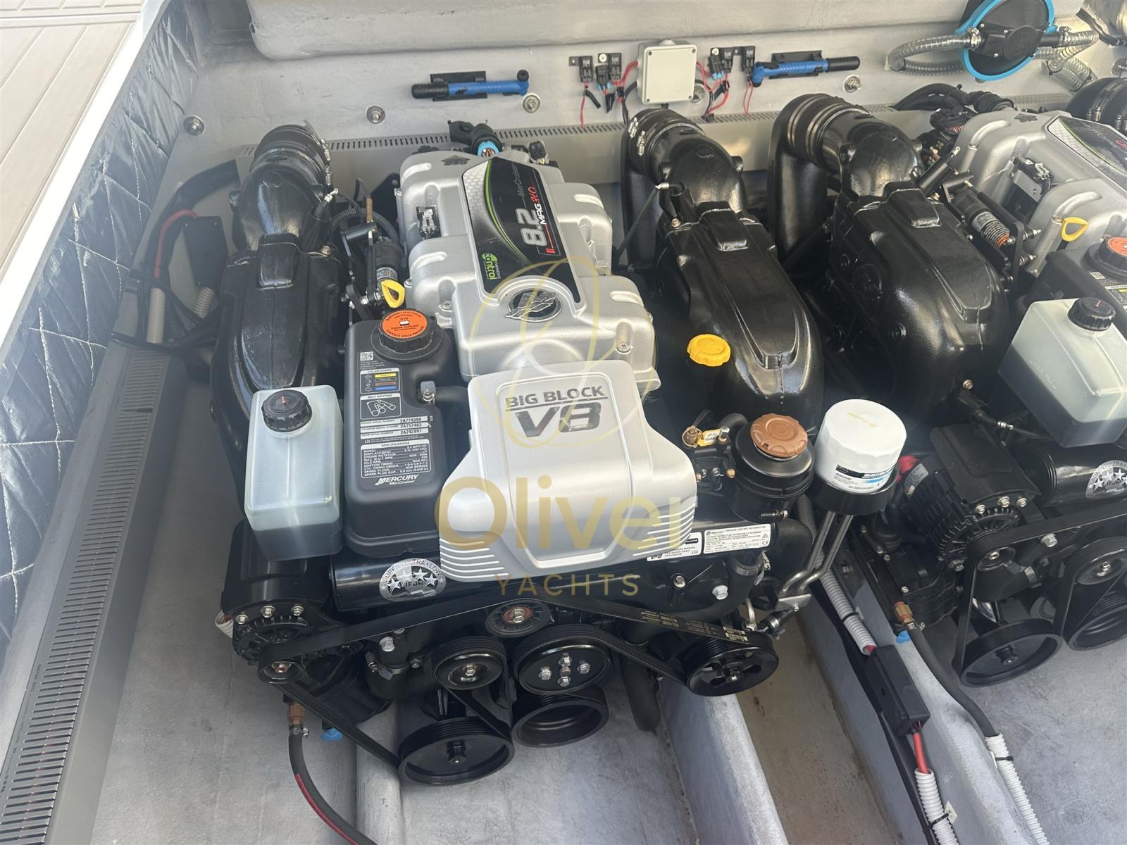 Le PIRELLI 42 est propulsé par deux puissants moteurs MERCURY de 430 ch avec seulement 100 heures de moteur, assurant à la fois fiabilité et hautes performances. La configuration du moteur lui permet d’atteindre une vitesse de pointe de 45 nœuds et une vitesse de croisière de 32 nœuds, offrant une expérience de navigation dynamique et réactive, aussi bien dans les eaux calmes que dans les eaux plus agitées. La combinaison de la puissance et de l’agilité le rend parfait pour ceux qui recherchent des performances de haut niveau sans compromettre la stabilité et la sécurité.