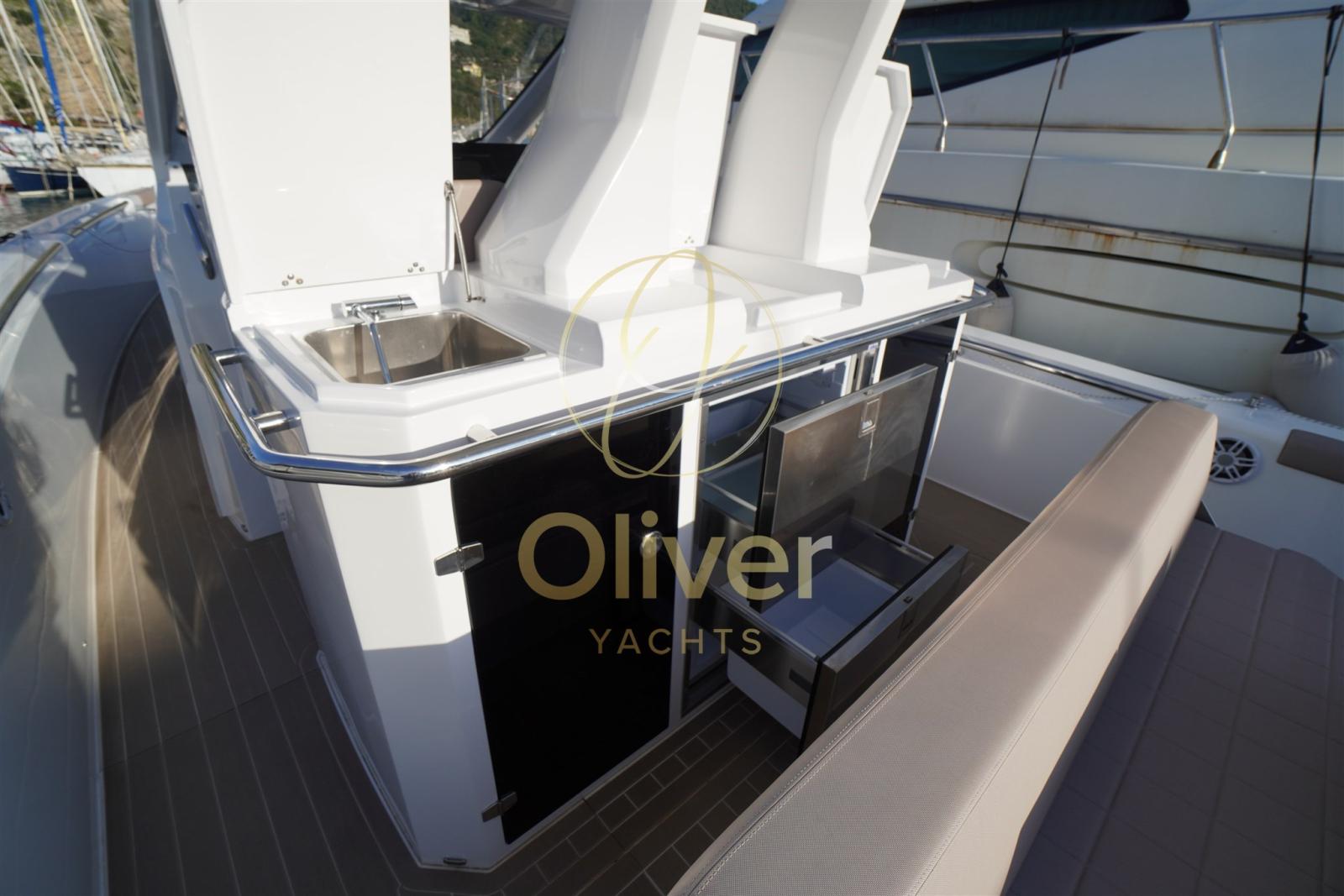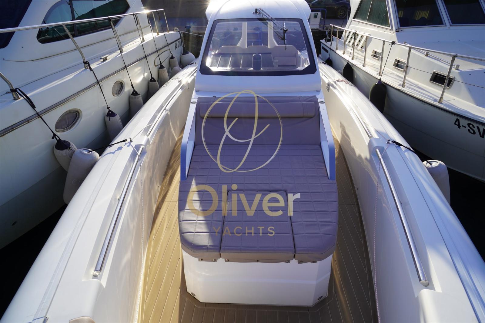 Coussins - Table d’extérieur - Cabine open space - Interrupteur à batterie - Prise de quai avec chargeur et câble - Onduleur - Treuil électrique avec ancre et chaîne galvanisées - Réfrigérateur externe - Évier extérieur - Douche extérieure avec système d’eau douce - Échelle d’escalade