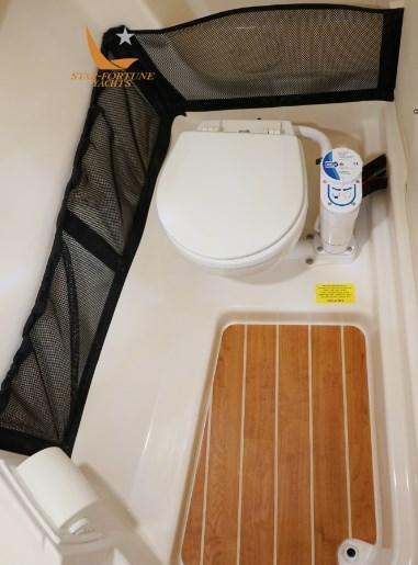Alarme gaz, Alarme moteur, Alarme de pompe de cale, Auto Dynamic Trim Interceptor, Eau sous pression, Trim hydraulique, Taquets pliants, Chargeur de batterie (opzionale), Couleur spéciale (opzionale), Douche de cockpit, Propulseur de poupe (opzionale e post vendita), Propulseur d'étrave (opzionale), Phares fixes arrière, Flaps hydrauliques, Crochet de remorquage pour ski nautique (opzionale), Hard top, Extincteur(s) fixe(s), Lavabo dans le cockpit (con piano in marmo naturale), Éclairage de courtoisie, Spots sous-marins (opzionale), Passerelle (opzionale), Pompe de cale automatique, Pompe de cale manuelle, Porte latérale (con scaletta da bagno), Prise de quai (opzionale), Connexion eau sous pression à quai, Onduleur (opzionale), Rollbar (Verniciato a polvere e trattato con metodo elettrolitico), Guindeau électrique, Echelle de bain, Système de filtration des eaux usées, Stabilisateurs (Opzionale Seakeeper), Chaise support HB, table de cockpit, Table pliante de salon (A prua e abbassandosi diventa un prendisole), Filières avec sortie latèrale, Corne, Winch électrique arrière, Winch électrique avant.