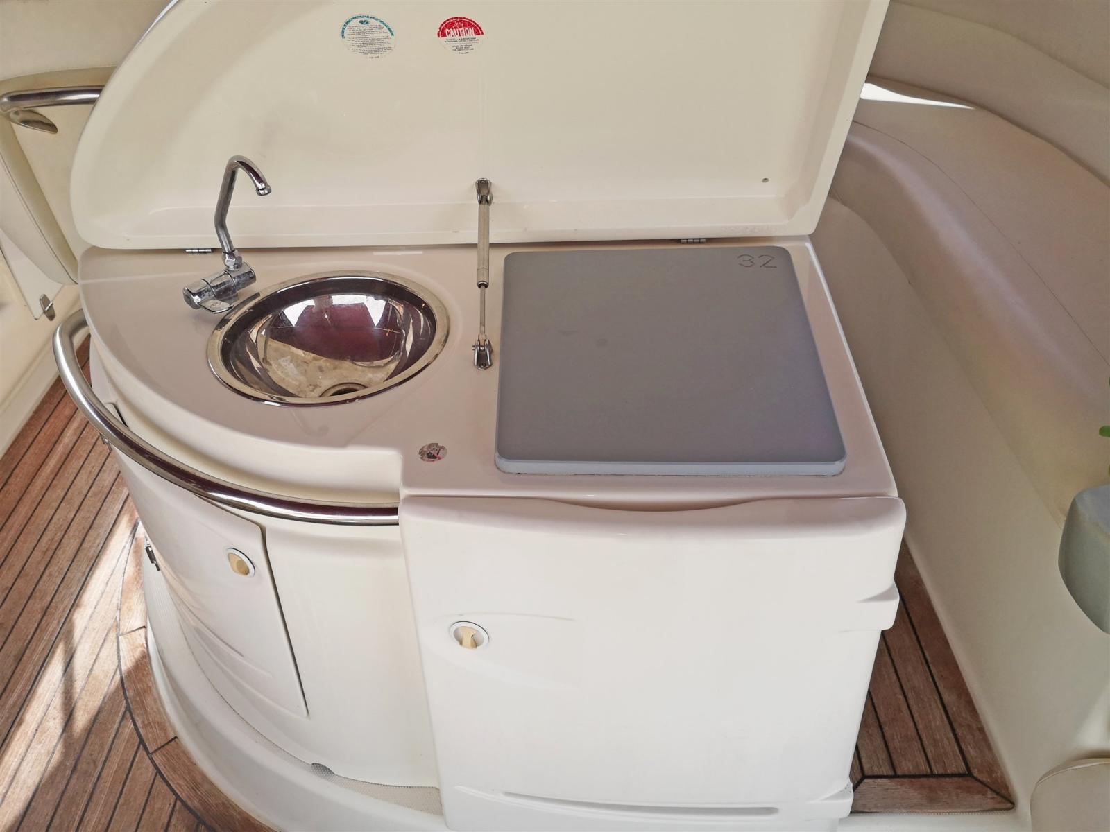 Station cockpit avec évier, plan de travail et réfrigérateur externe
