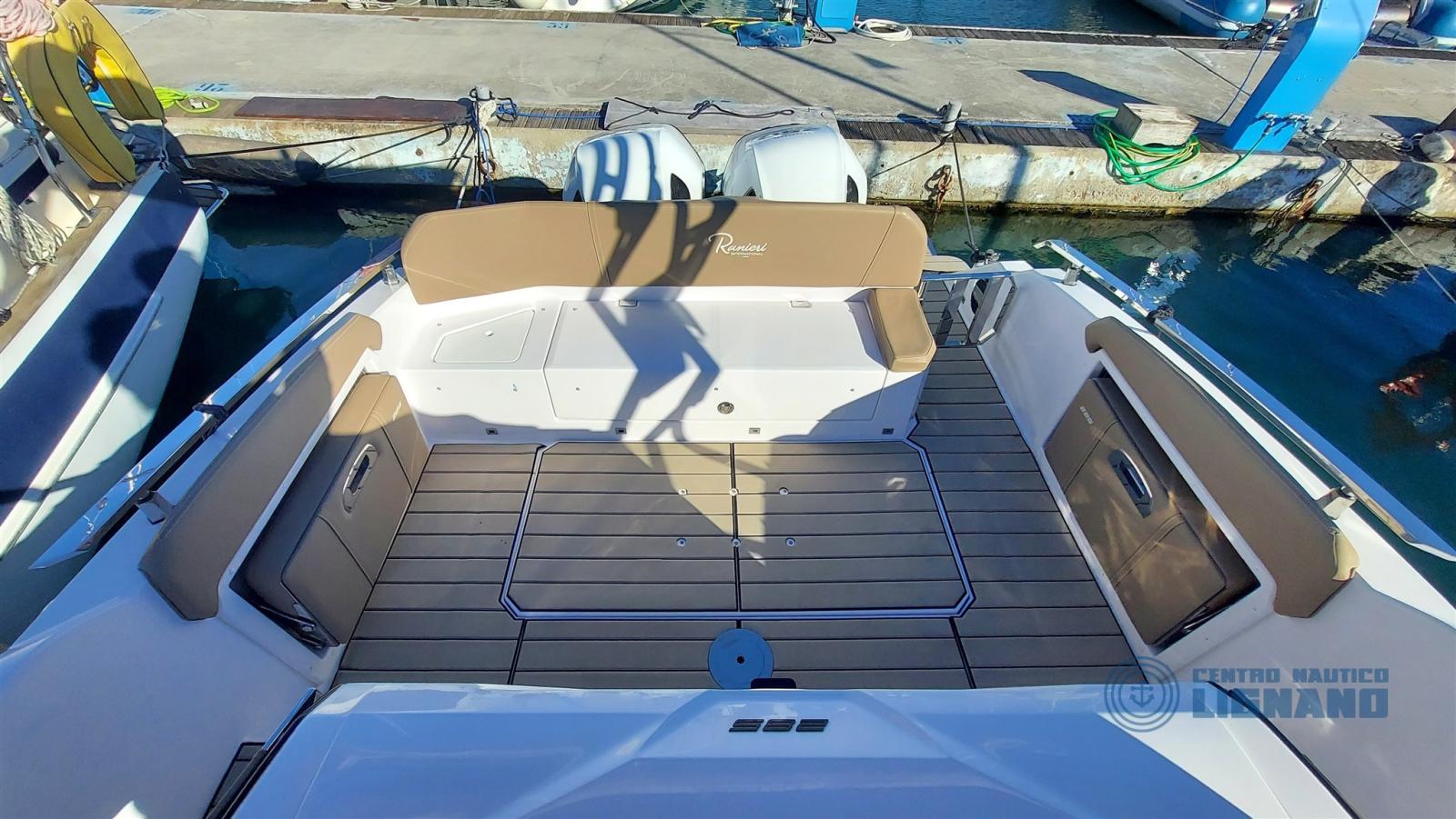 Ranieri International 285 LX de 2021 avec 2 moteurs électroniques Honda Marine V6 2x250Hp, de couleur blanche. Intérieurs avec cabine open space à l’avant avec quatre hublots ouvrants, table centrale convertible, lumières intérieures, lit arrière pleine largeur, divers casiers et espaces de rangement, panneau thermique, salle de bain séparée avec WC électrique et lavabo. Zone de conduite avec console hautement équipée avec double GPS, système de volets, jauge de carburant, système stéréo Heartz avec haut-parleurs et caisson de basses, boussole, radio VHF, système GPS Simrad, deuxième moniteur Simrad, bar extérieur avec cuisinière à gaz, évier, ordinateur de bord, table électro-hydraulique rétractable, coussins complets en excellent état, siège conducteur double avec siège rabattable, sièges latéraux rabattables, filtres de décantation, système de batterie double avec interrupteur de batterie à 4 voies, réfrigérateur externe, arceau de sécurité noir avec double auvent, veilleuse, feux de navigation, feux de courtoisie blancs pour les marqueurs de marche, console et housse de siège, plates-formes avec échelle de mer latérale, guindeau électrique, portail d’entrée, douche coulissante à l’arrière, teck synthétique total, direction hydraulique, Accélérateur électronique du moteur. Bateau en excellent état, essai en mer, parfaitement entretenu. Les moteurs sont parfaits et ont 720 heures de mouvement à ce jour. Le bateau peut être vu au chantier naval Centro Nautico Lignano. Téléphone direct 347 4077005