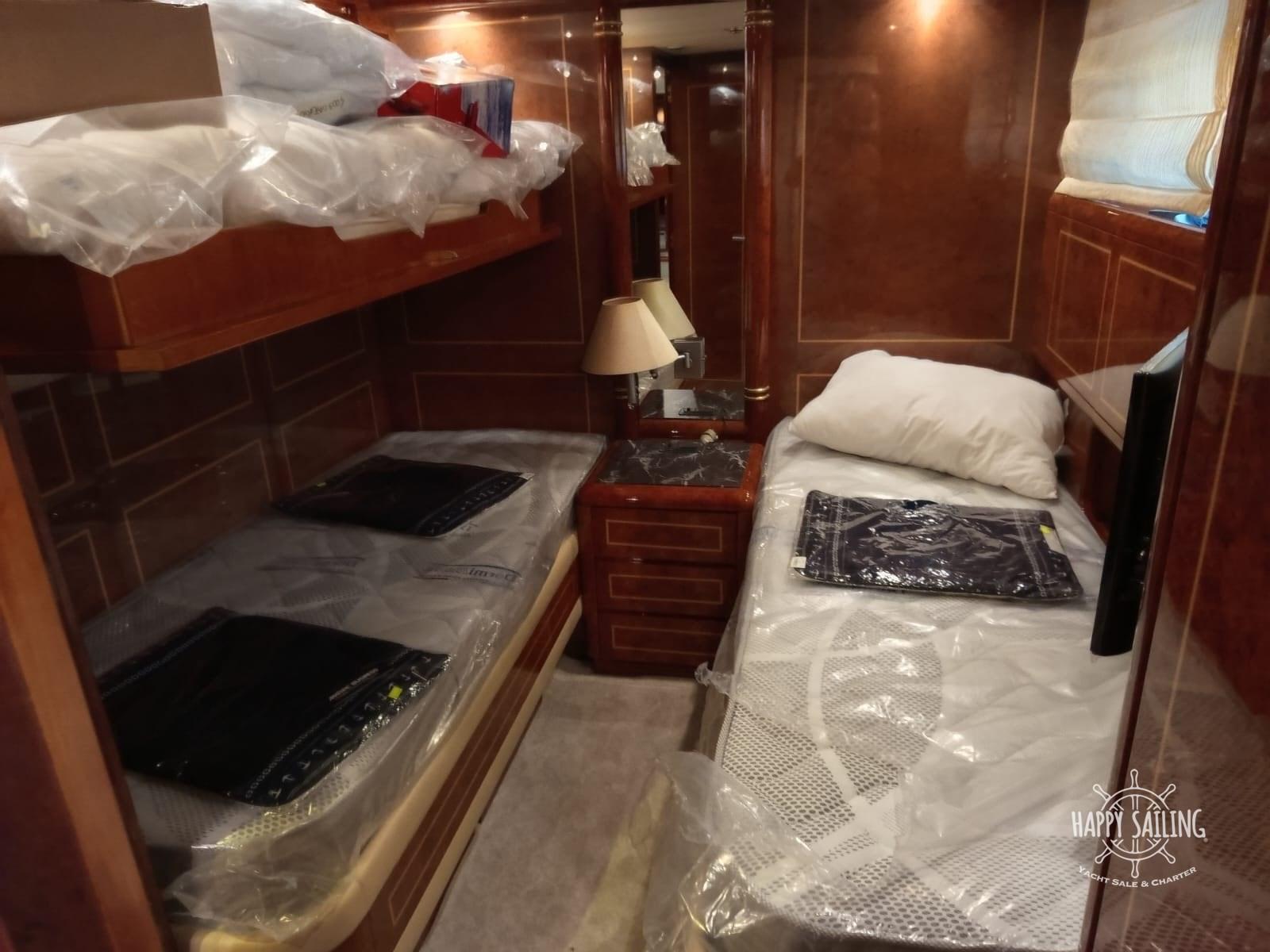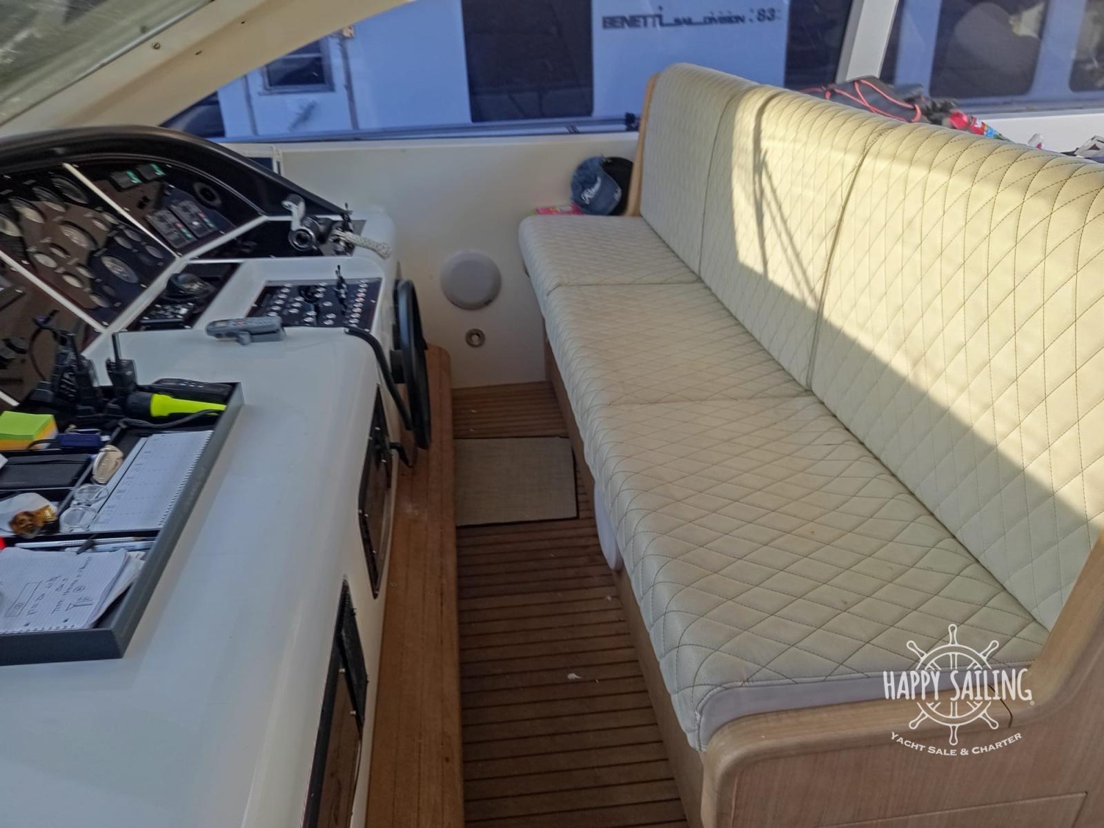 Alarme gaz, Alarme moteur, Alarme de pompe de cale, Eau sous pression, Douche de cockpit, Flaps hydrauliques, Garage à annexe, Hard top, Extincteur(s) fixe(s), Lavage de chaine, Lavabo dans le cockpit, Éclairage de courtoisie, Spots sous-marins, Passerelle, Plateforme arrière, Pompe de cale automatique, Porte latérale, Cockpit en teck, Guindeau électrique, table de cockpit, Annexe, Winch électrique arrière.