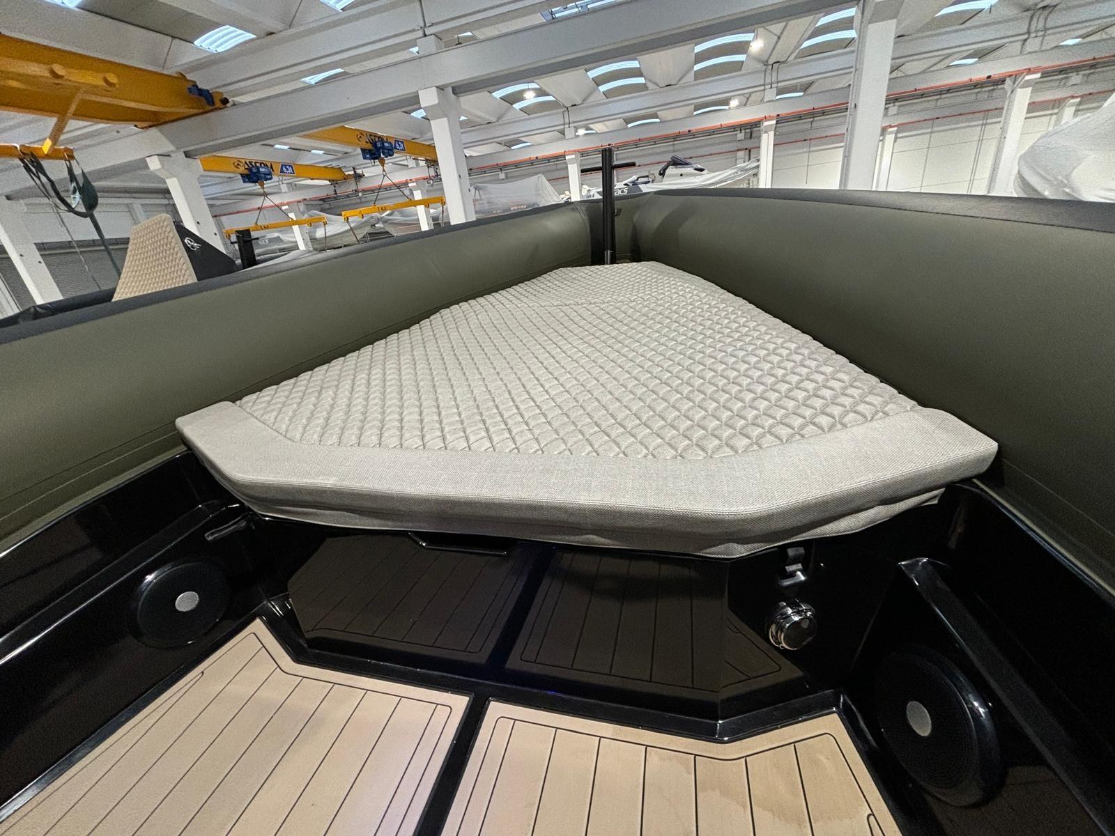 Le grand bain de soleil à l’avant est précédé d’un siège avec un dossier confortable.