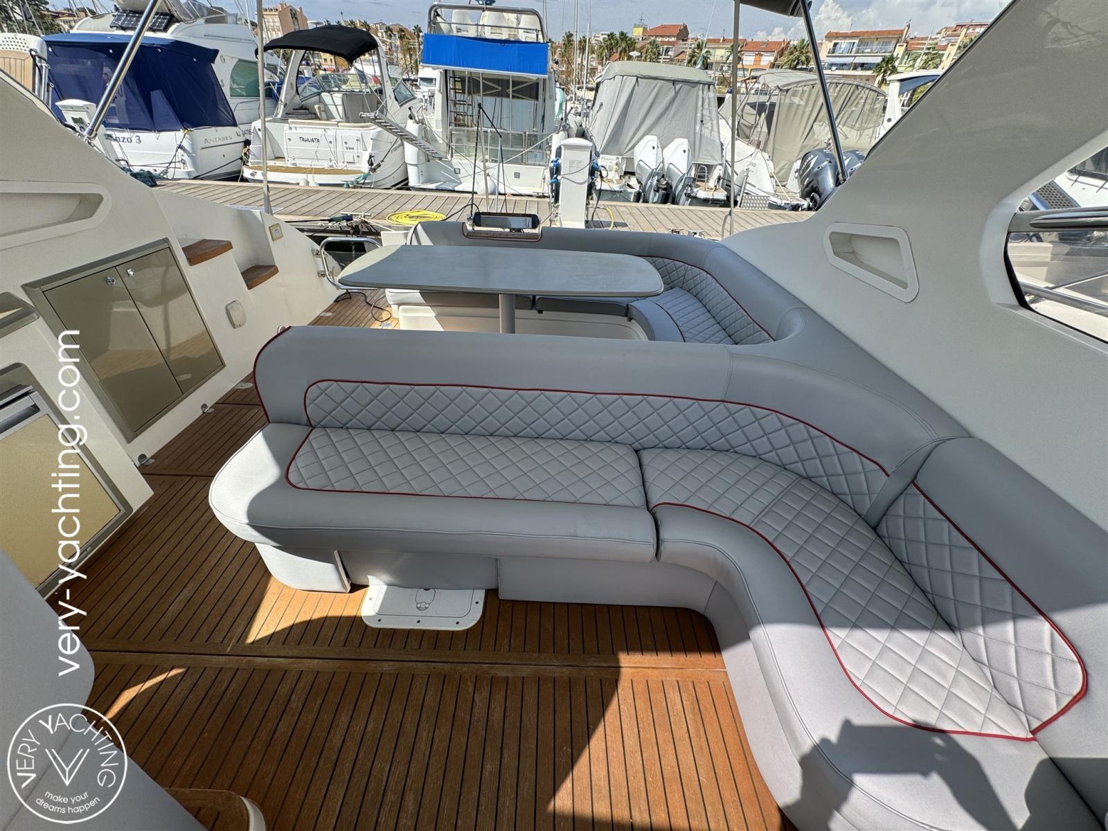 Eau sous pression, Douche de cockpit, Hard top, Extincteur(s) fixe(s), Lavabo dans le cockpit, Passerelle, Plateforme arrière (teck), Pompe de cale automatique, Cockpit en teck, Prise de quai, Onduleur, Guindeau électrique, Echelle de bain, table de cockpit.