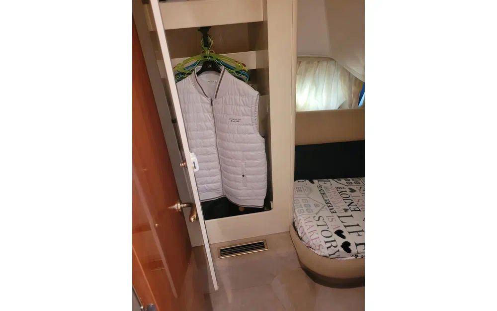 Amateurs de technologie, de cuisine et de détente, préparez-vous à cocher (presque) toutes les cases : réfrigérateur, micro-ondes, cuisinière, machine à café, et même une machine à glace pour les apéros. Profitez du chauffage, de la climatisation, d’un groupe électrogène, GPS, radar, sondeur, VHF, pilote automatique, logiciel de navigation, compas et AIS pour naviguer l’esprit tranquille. Côté confort extérieur : bimini, tauds, passerelle hydraulique, douchette, évier extérieur, flybridge : tout est là pour vos journées farniente ou vos soirées prolongées.