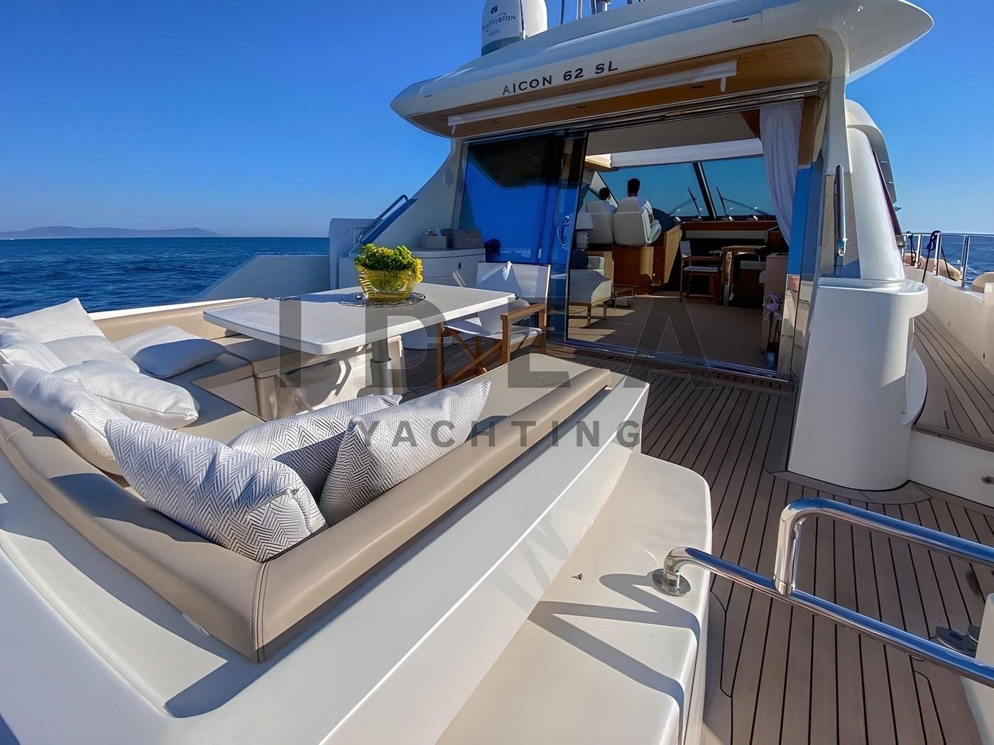 Poussez votre détente à de nouveaux sommets sur la vaste terrasse, où un grand espace extérieur vous invite à vous prélasser au soleil ou à savourer la brise rafraîchissante de l’océan. L’Aicon 62SL est vraiment une oasis de tranquillité sur l’eau, où chaque détail a été conçu pour votre plus grand plaisir. Découvrez l’art de vivre en mer avec un yacht qui allie sans effort élégance, confort et vue imprenable, bienvenue dans votre nouveau paradis flottant.