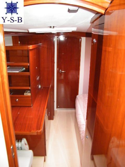 La cabine armateur se trouve à l'avant, grand lit double sur tribord et salle d'eau dans la pointe.
