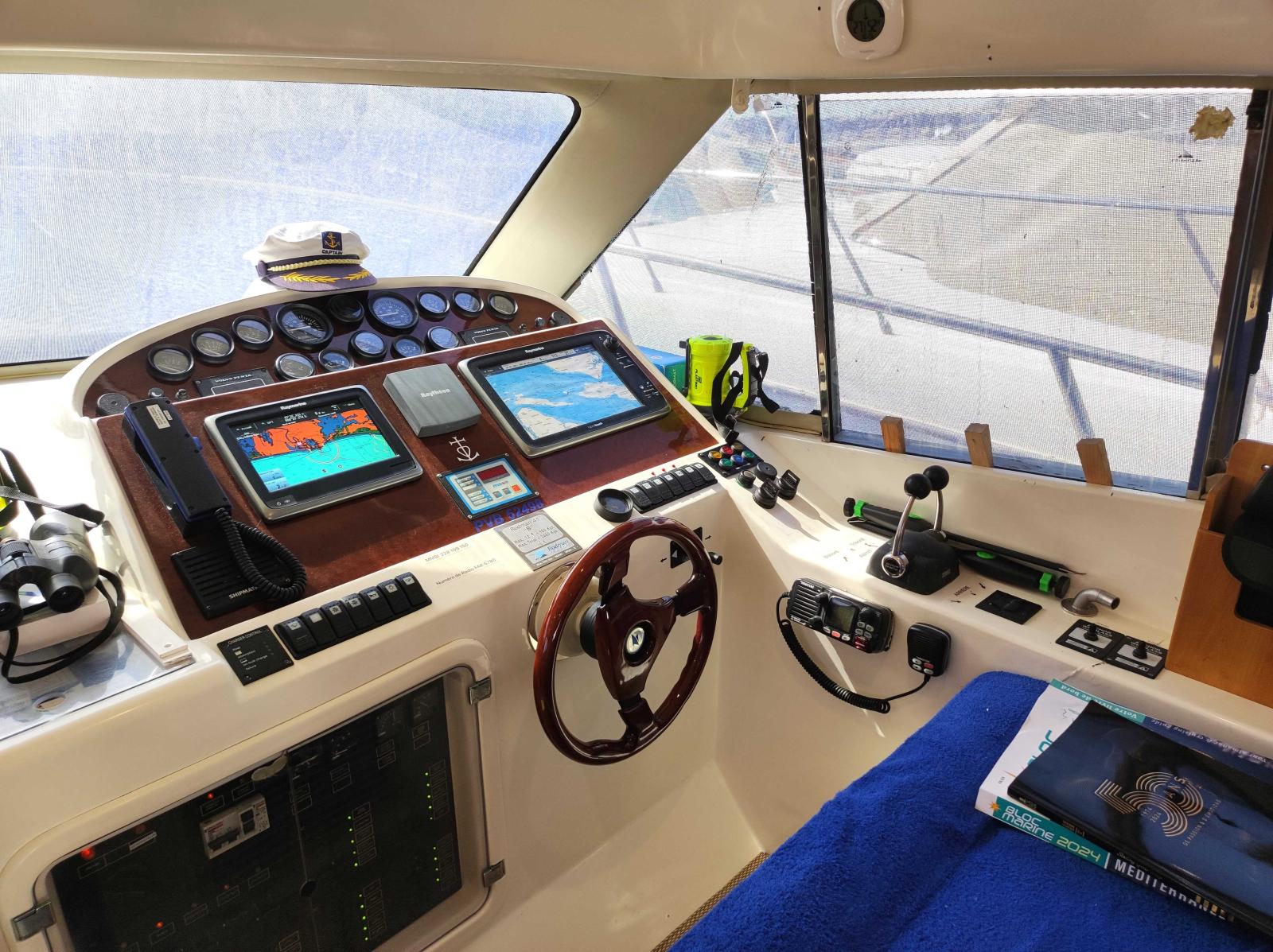 Bateau bien équipé, groupe électrogène, climatisation réversible, électronique complète.