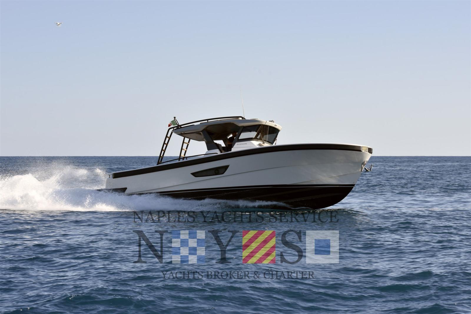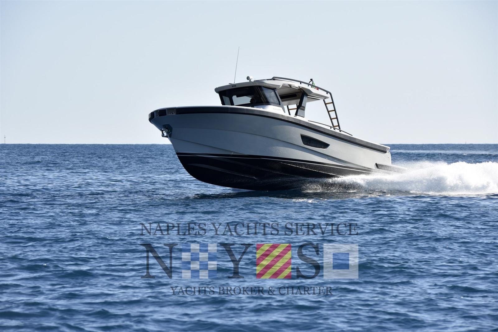 Bimini (aft with poles), Sellerie complète, Coussin avant, sellerie de cockpit, Supplément bain de soleil (on hard top), Taud de console.