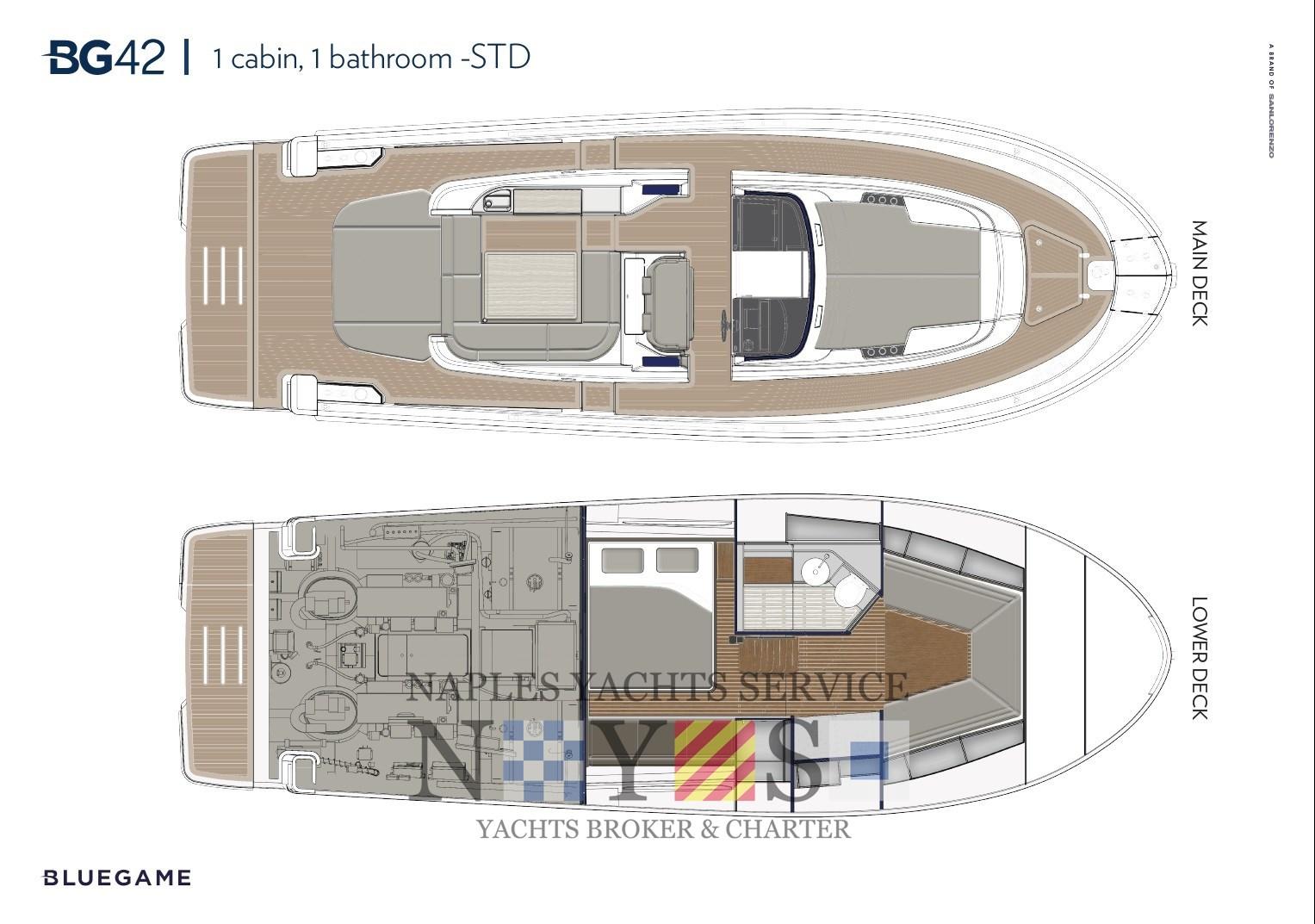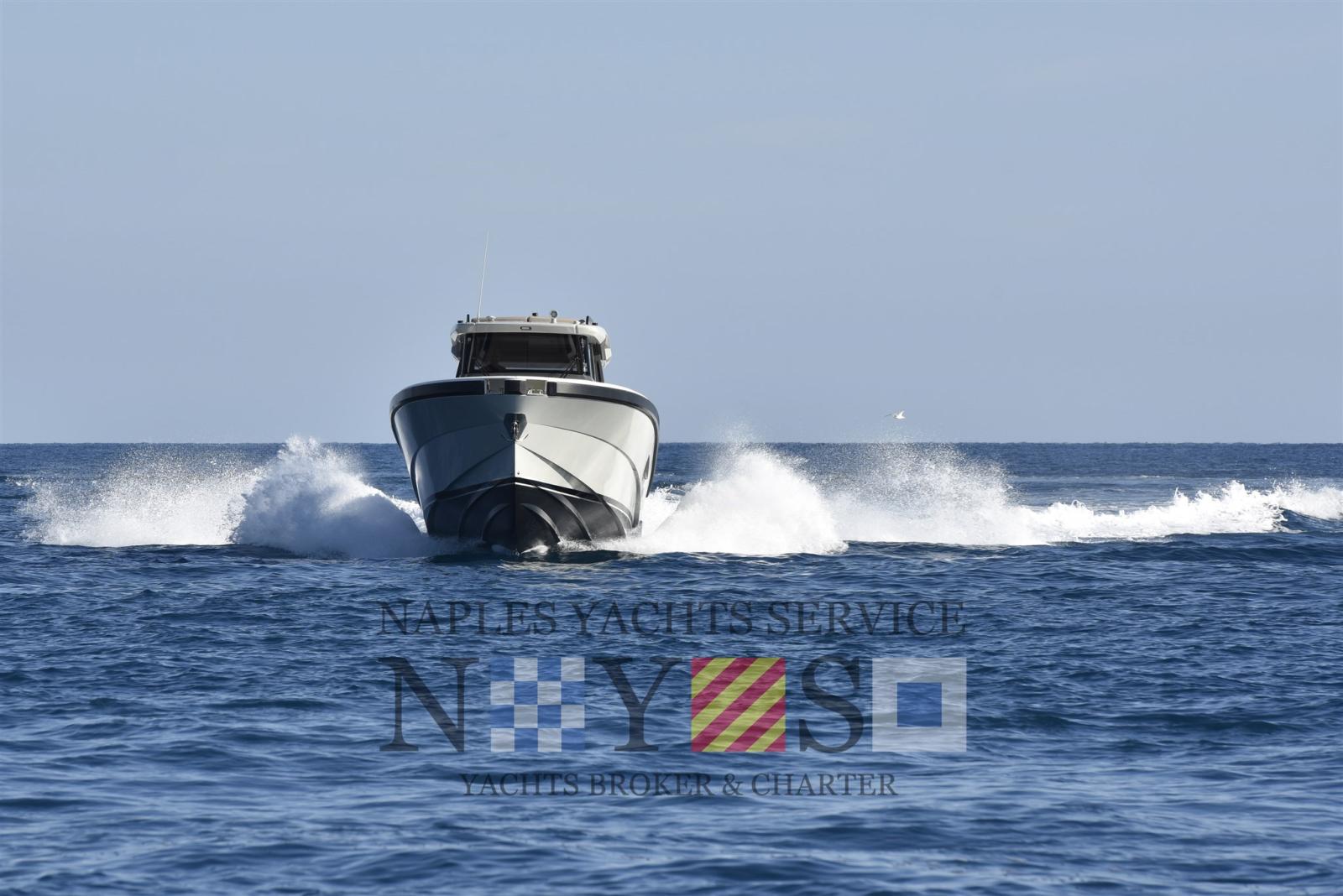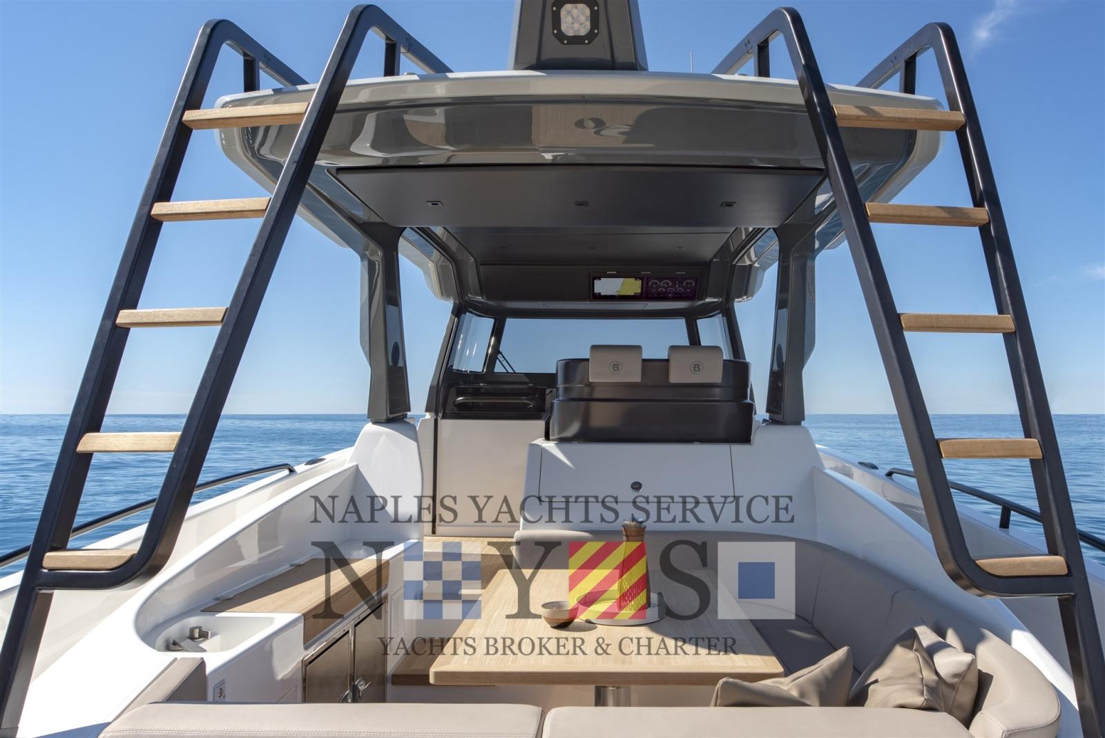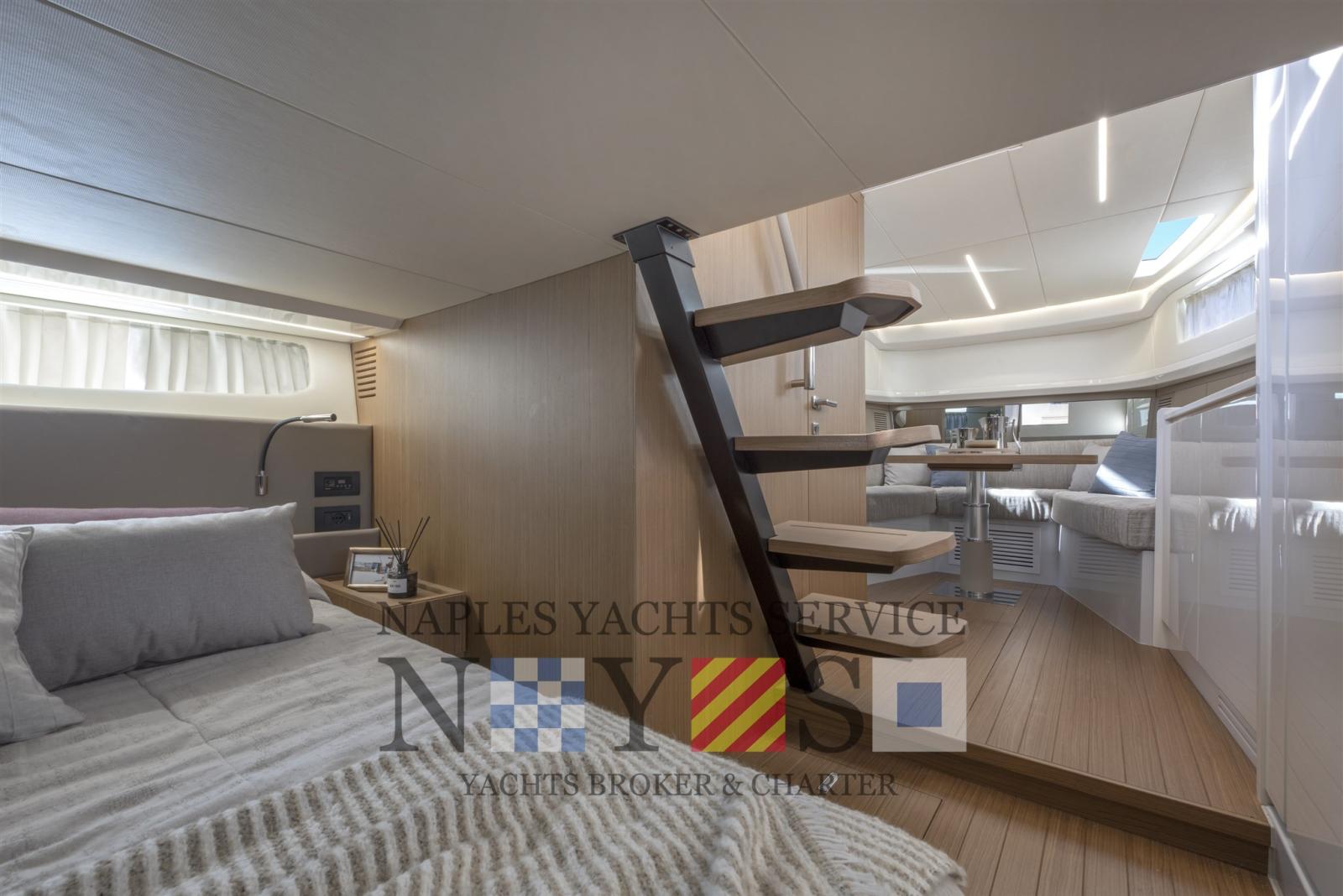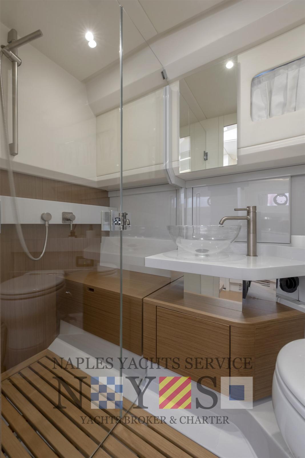 Alarme gaz, Alarme moteur, Alarme de pompe de cale, Ancre (15 kg SS Bruce type with 75m galvanized chain 8mm), Ouverture du compartiment moteur électrique, Eau sous pression, Trim hydraulique (Volvo Penta electric Trim Tabs), 4 Batteries (For generator, engines and service), 2 Taquets pliants (mid ship + 4 fixed), Système de vidange, Passavant en teck, Chargeur de batterie (50 Ah), Phares fixes arrière (Front and front docking lights), Phare de poursuite, Flaps électriques (Trim Tabs), Flaps hydrauliques, Hard top (Full carbon fiber wiht 2 ladders to sundeck), Extincteur(s) fixe(s), Indicateurs de flaps, Lavabo dans le cockpit, Éclairage de courtoisie, Passerelle (transformer), Plateforme arrière, 4 Pompe de cale automatique, Porte latérale (sliding), Cockpit en teck, Prise de quai (16 Ah with 15m cable), Onduleur, Guindeau électrique (1.000 W), Echelle de bain, table de cockpit (Electric telescopic), Table pliante de salon (Electric telescopic), Corne, 2 Winch électrique arrière.