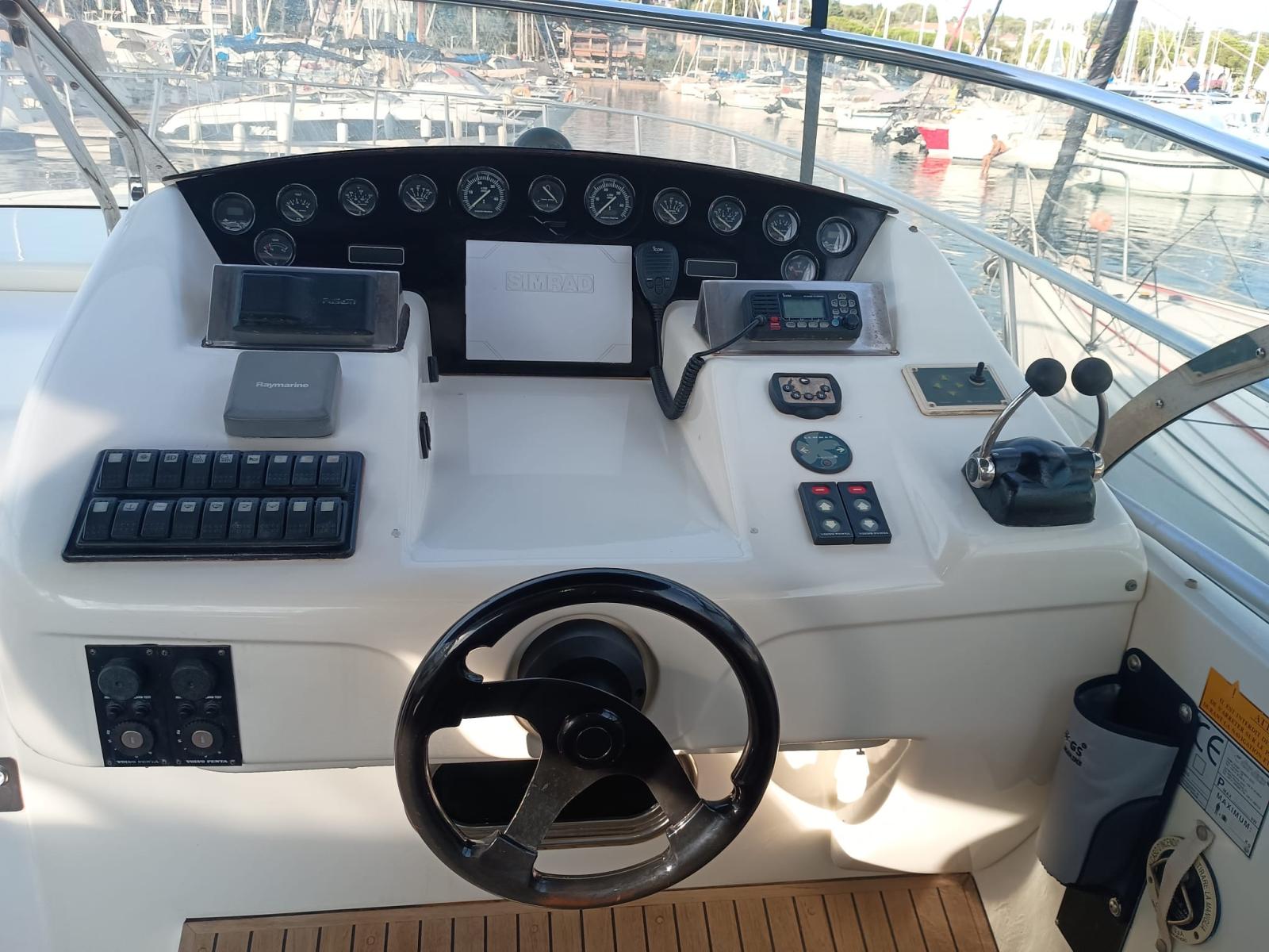 Sa carène performante garantit une excellente tenue en mer, assurant confort et stabilité, même à haute vitesse. Son cockpit spacieux, son bain de soleil avant et arrière, ainsi que son intérieur raffiné avec cuisine équipée et salle d’eau en font un bateau idéal pour des escapades en mer en famille ou entre amis.