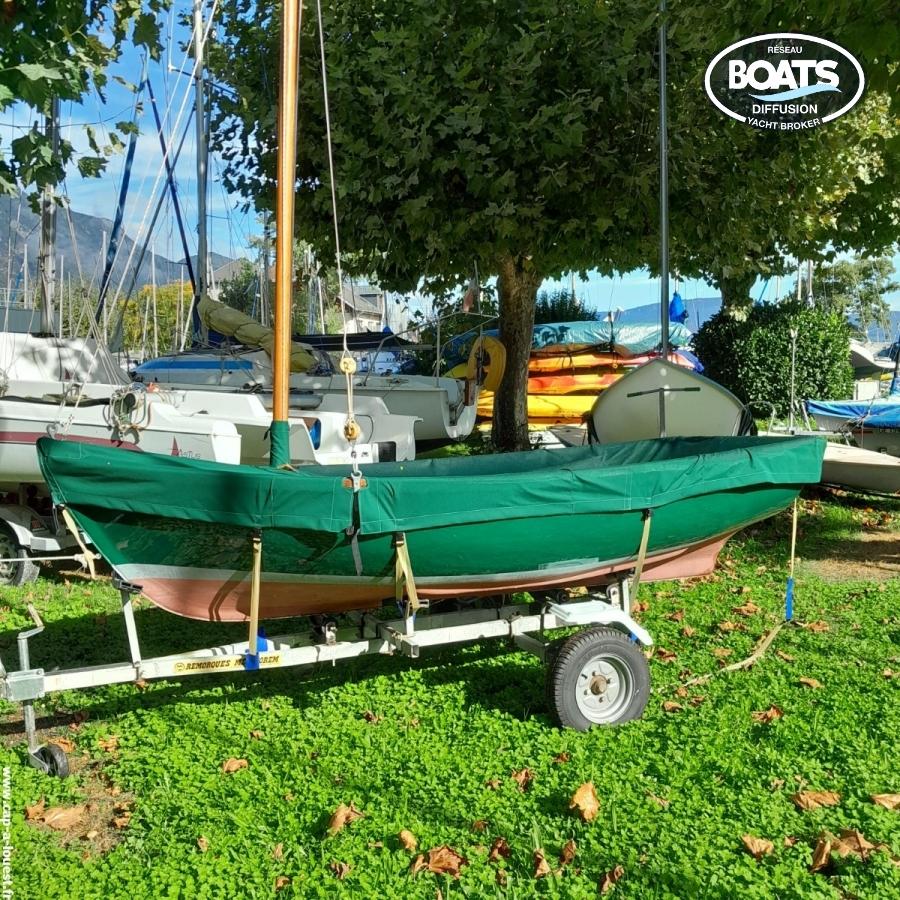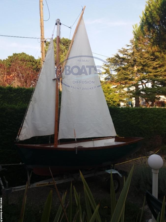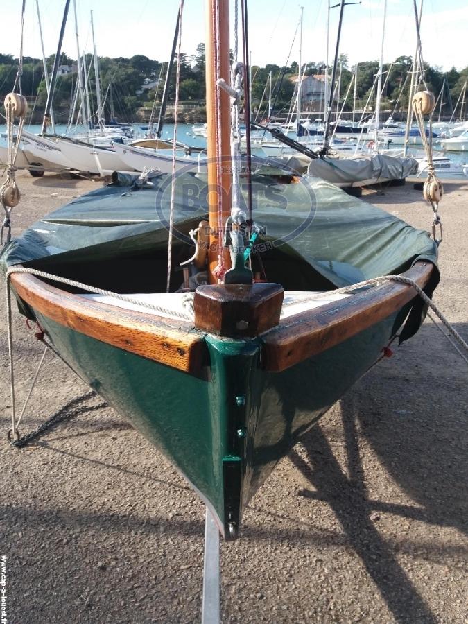 Observations : Fabriqué par le chantier Depossesse (aujourd’hui fermé) ce bateau, type canot Breton à dérive sabre, dont la coque en polyester est de 3.25 de long et de 1.65 de large était une annexe des Pen Duick.