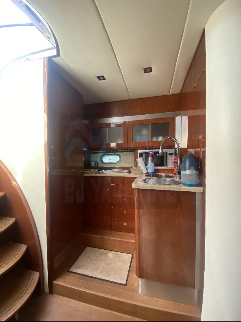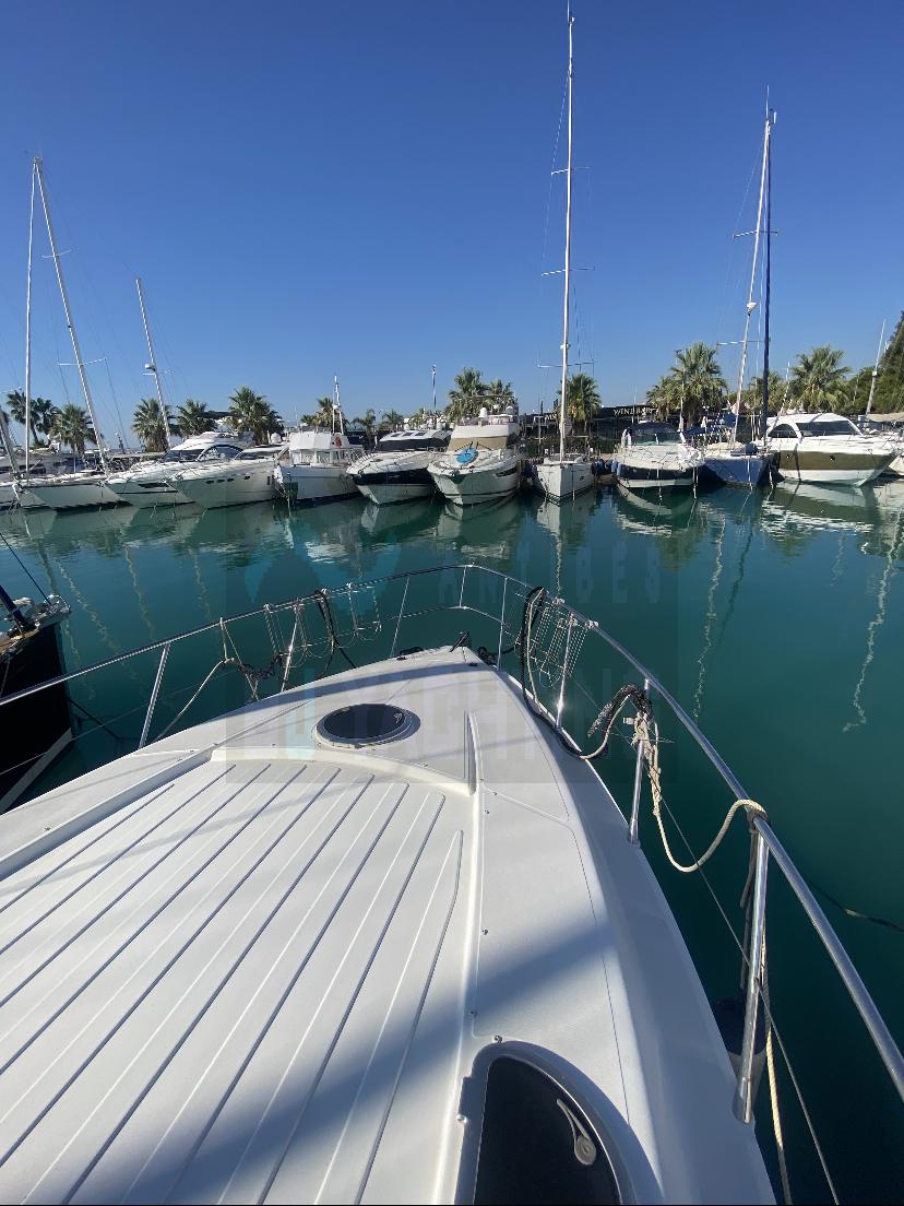 Équipé de toutes options, il dispose de la climatisation réversible, d’un générateur, dessalinisateur, joystick IPS, passerelle électrique, pilote automatique, toit ouvrant Hard Top, une plateforme cockpit en teck, annexe avec moteur électrique, et bien plus.