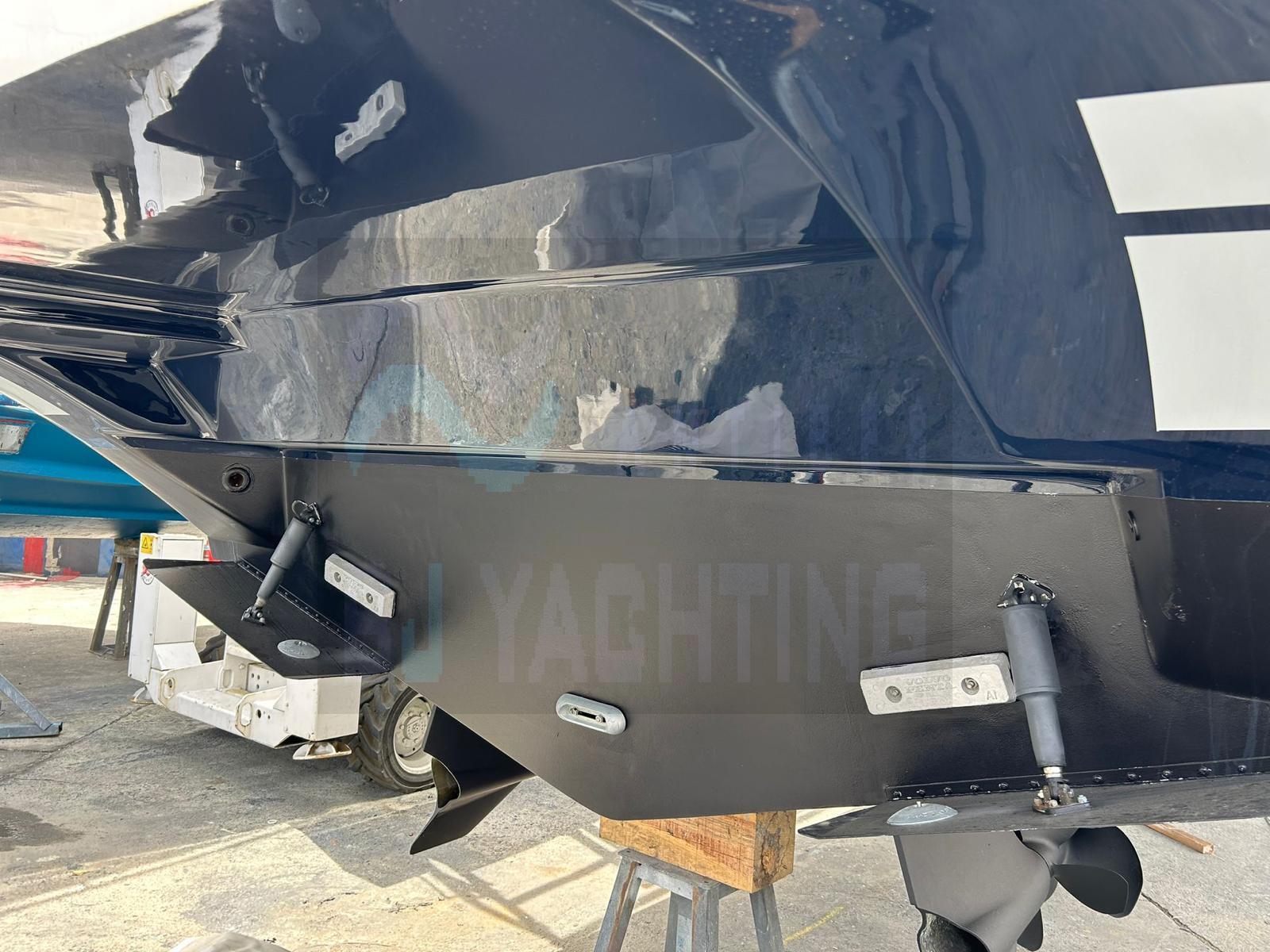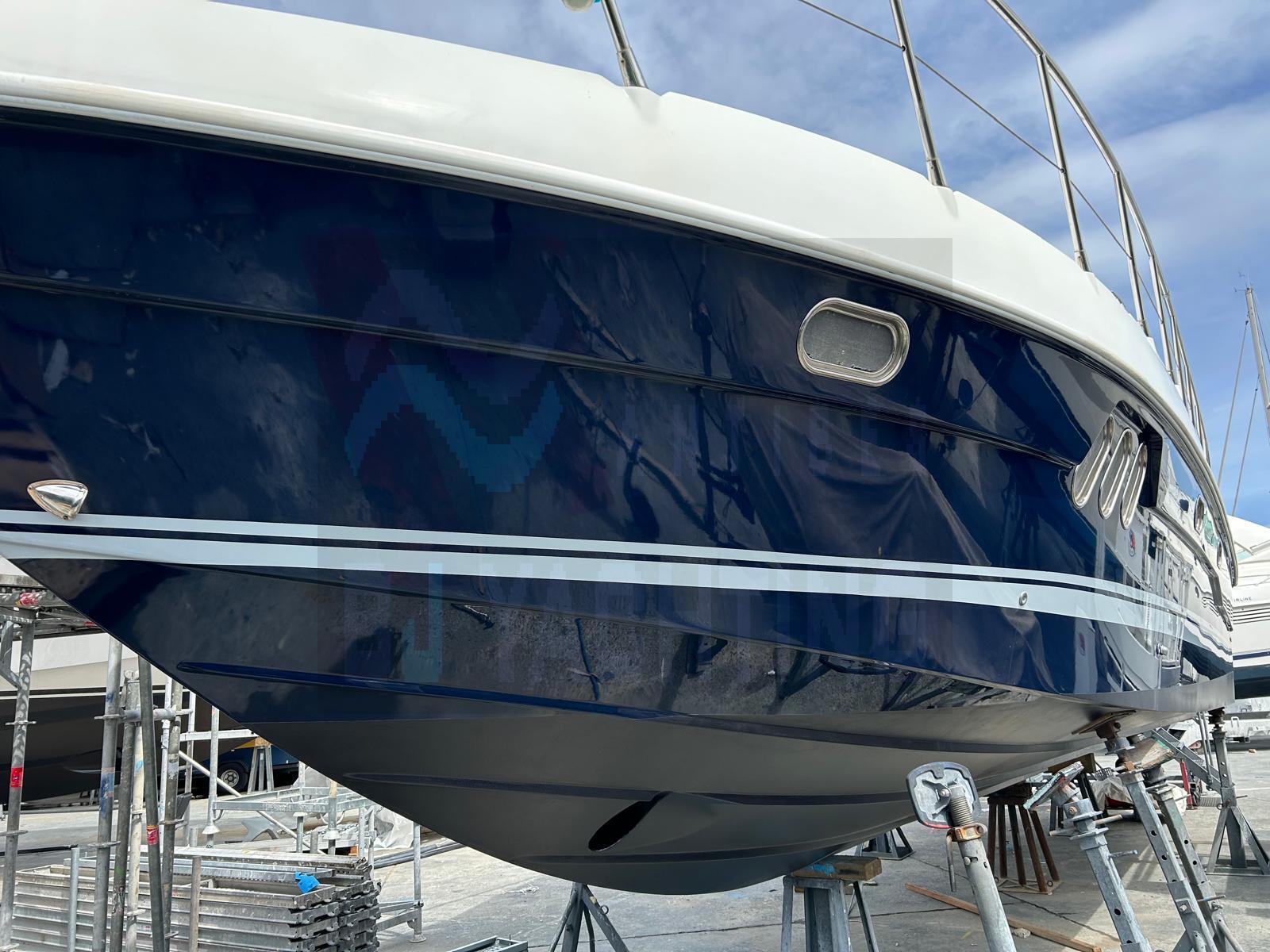Le refit 2024 inclut un Flexiteck neuf, une révision complète des moteurs et IPS, peinture de coque (Awlgrip) avec hydrogommage, primeur epoxy, antifouling, vannes et passe coques neuves, moteur du toit ouvrant remplacé, sellerie neuve (100 000€ de frais)