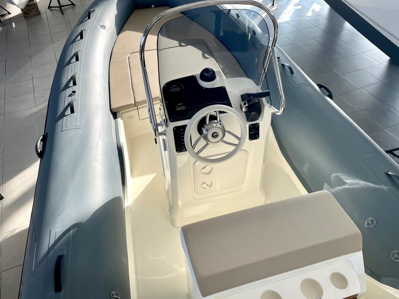 Cette version luxe est équipée d'un roll bar inox, d'une douchette, d'insert teck, d'un GPS/Sondeur GARMIN 6', d'une radio FUSION, de plateformes arrière, etc ..