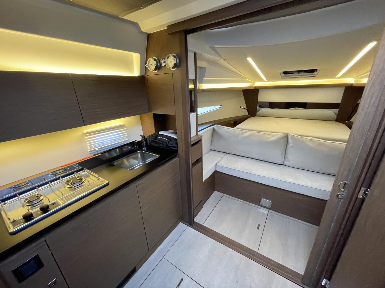 C’est un bateau sportif et élégant, idéal pour les amateurs de croisières côtières et sorties en mer. Il offre puissance et maniabilité, renforcées par la présence d’un Joystick et d’un propulseur d’étrave, garantissant des manœuvres fluides et précises.