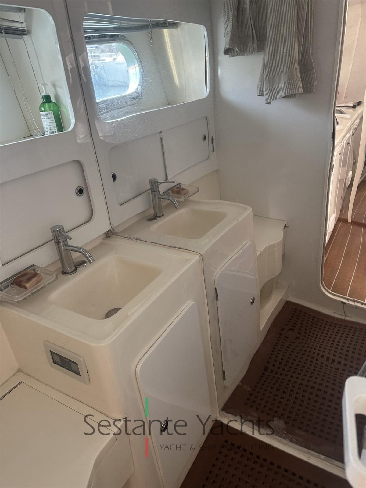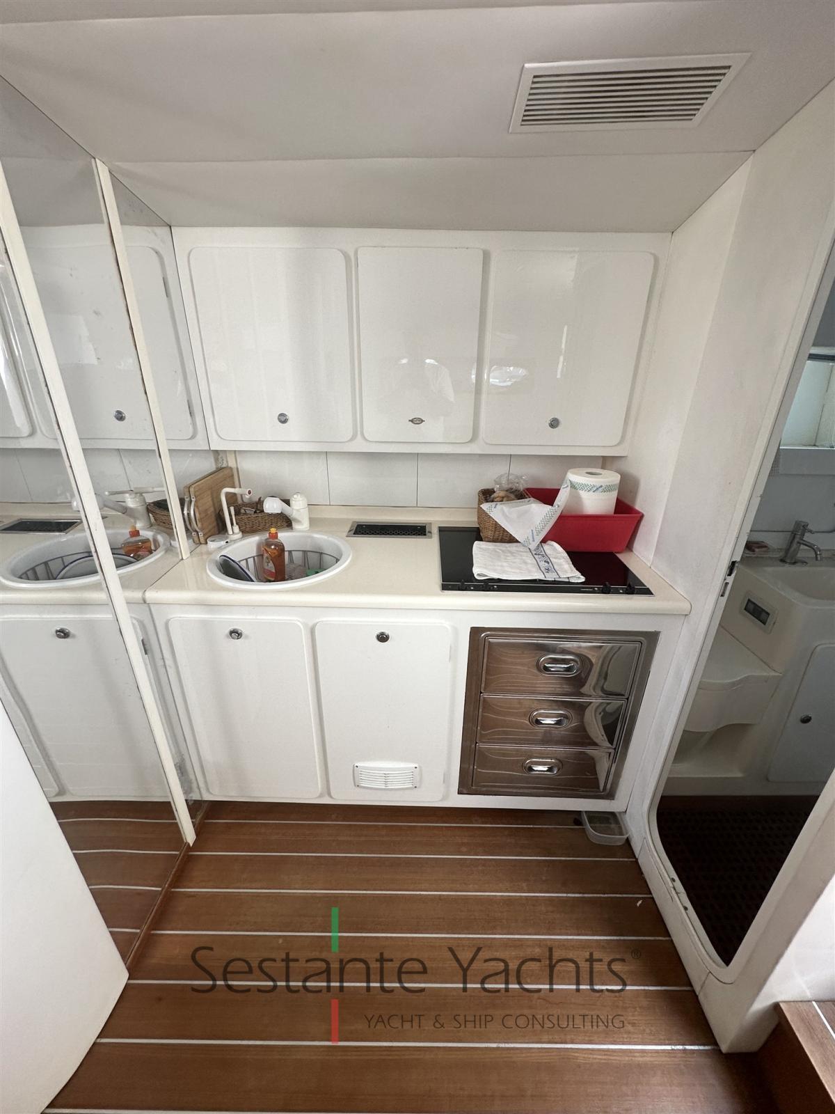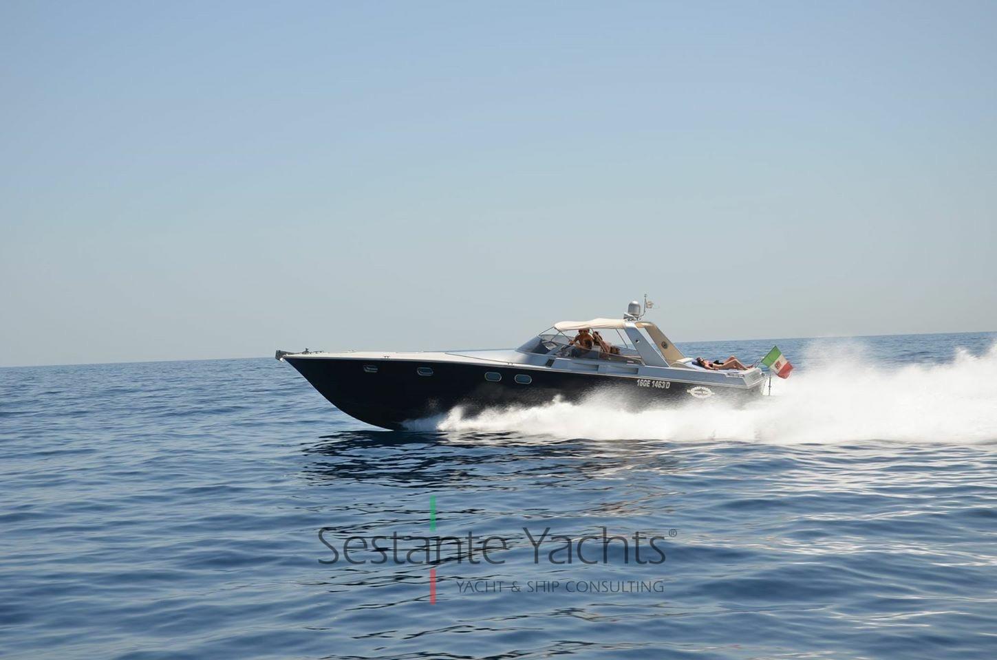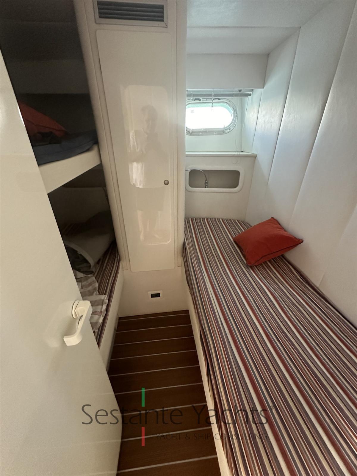 Coque emblématique aux qualités de navigation incontestables ! Coque numéro 51 avec passerelles latérales vers le bain de soleil arrière et sans passerelle. Le bateau a été entièrement réaménagé en 2007, y compris le remplacement des moteurs par des V12 Caterpillar de 1 420 chevaux (actuellement avec 908 heures de moteur). Bateau excellemment entretenu par un propriétaire sérieux et consciencieux.