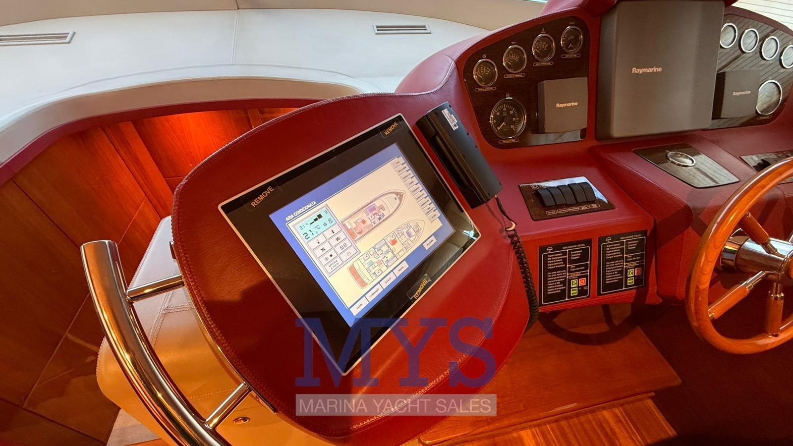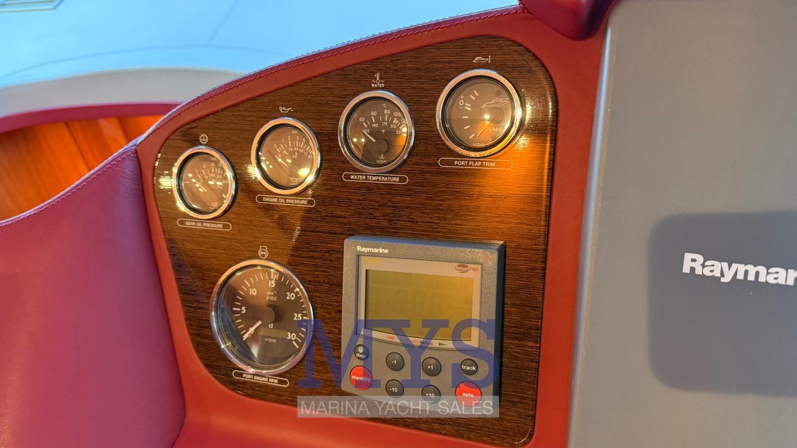 Indicateur d'angle de barre, Antenne radar, 2 Compas, 2 Commande électrique, Ordinateur fixe de bord, Compteur de chaîne, DSC VHF, 2 Sondeur pêche (Raymarine), 2 GPS (Raymarine), Cartes et guides, 2 Pilote automatique (Doppia stazione), Plotter GPS, Panneau de commande, 2 Radar (Raymarine), 2 Radio VHF.