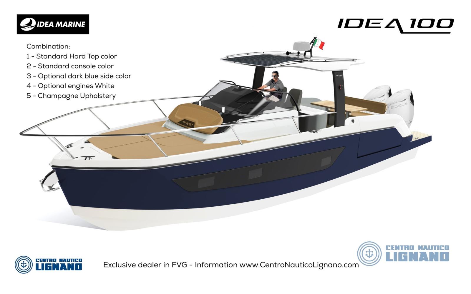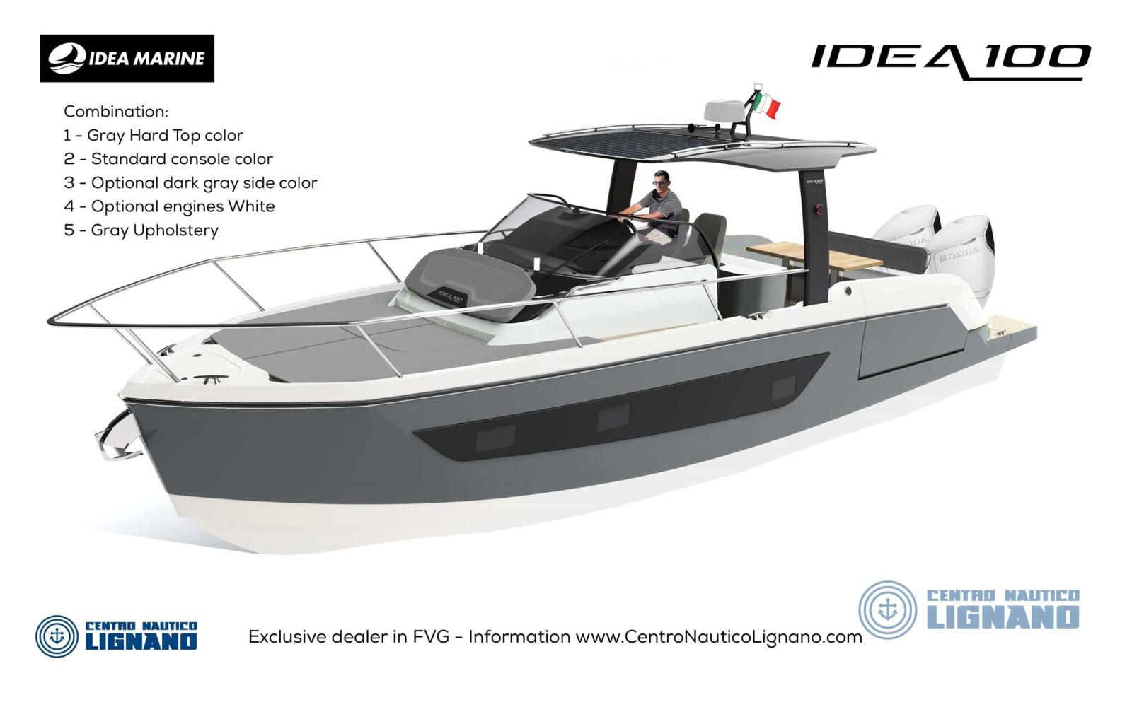 Idea Marine 100 est révolutionnaire, c’est un bateau unique en son genre, de taille parfaite pour faire le bonheur d’une famille de 4/5 personnes. Le moteur minimum est de 2 moteurs hors-bord de 250 chevaux, Honda Marine V6 250, ou autonomie à une version plus puissante V8 de 350 CV. Centro Nautico Lignano est le concessionnaire FVG officiel d’Idea Marine, nous récupérons votre bateau et satisfaisons vos demandes.