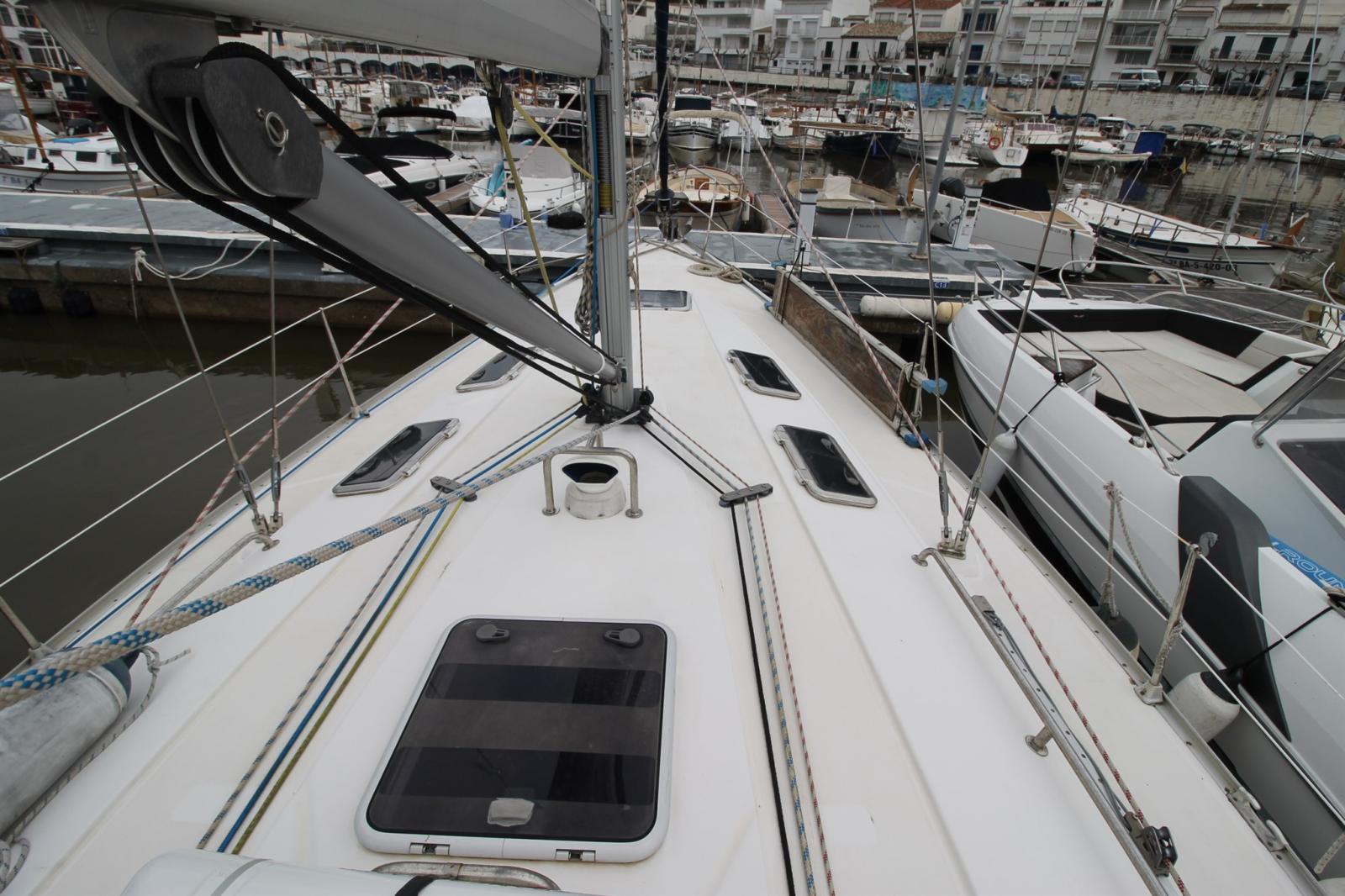 Ancre (Charrue CQR), Eau sous pression, Douche de cockpit (avec eau chaude), Bossoirs pour annexe (sur portique inox), Moteur d'annexe (Honda 2,3cv 4t), Panneau solaire (possible sur portique inox), Passerelle (simple), Pompe de cale manuelle, Prise de quai, Guindeau électrique (1000w avec chaine de 10), Gréement monotoron (de 2018), Echelle de bain, Chaise support HB, Annexe (yamaha 2,2m), 4 Winch.
