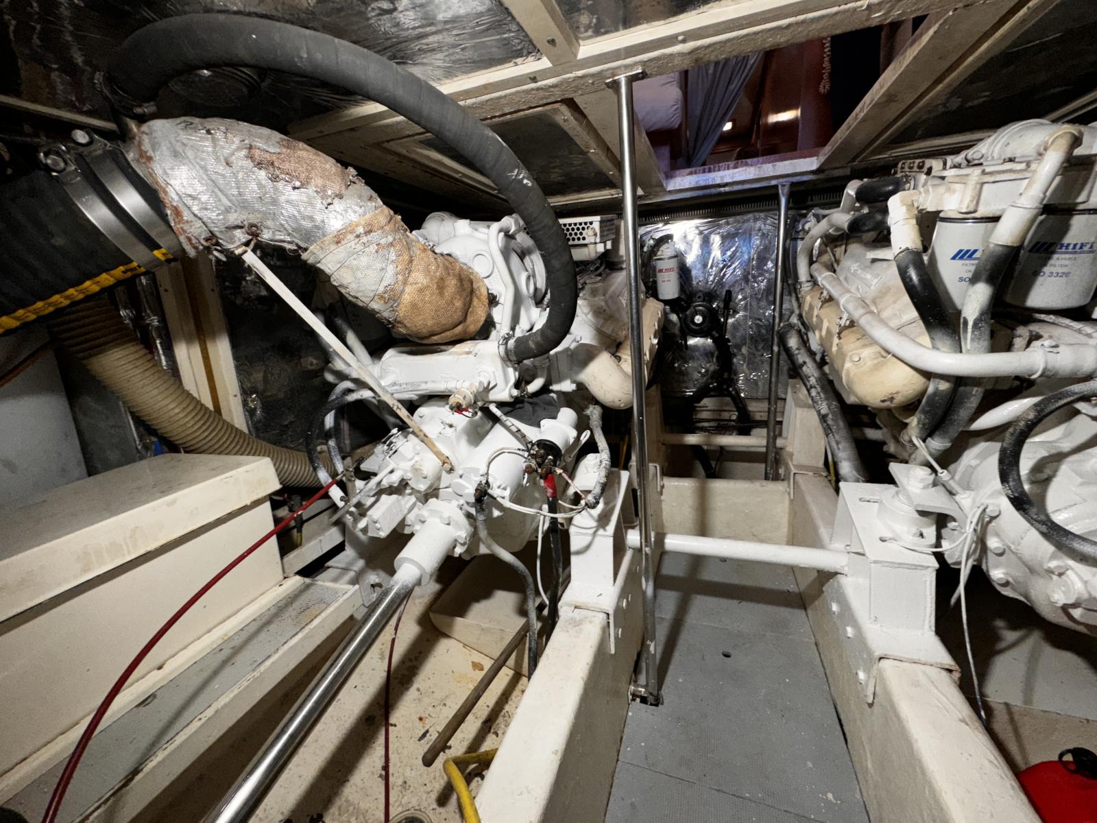 Derniers travaux techniques: échangeurs, pompes à eau, coudes d'échappement, révision moteurs, révision générateur, démarreur moteurs neuf.