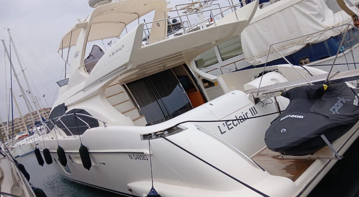 CAP MED BOAT & YACHT CONSULTING est heureux de vous présenter ce superbe Azimut 62 Fly livré en 2007, situé près de Cannes, équipé d'un stabilisateur gyroscopique SEAKEEPER pour un confort optimal en mer.