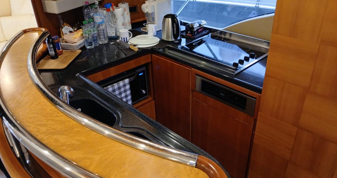 Ce yacht offre un confort inégalé et un équipement premium, parfait pour des croisières en toute sérénité. Possibilité de vendre avec le jet ski SEADOO.