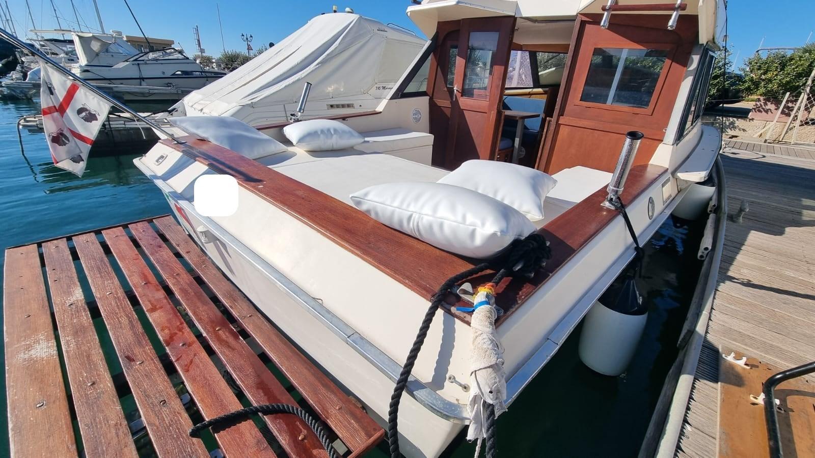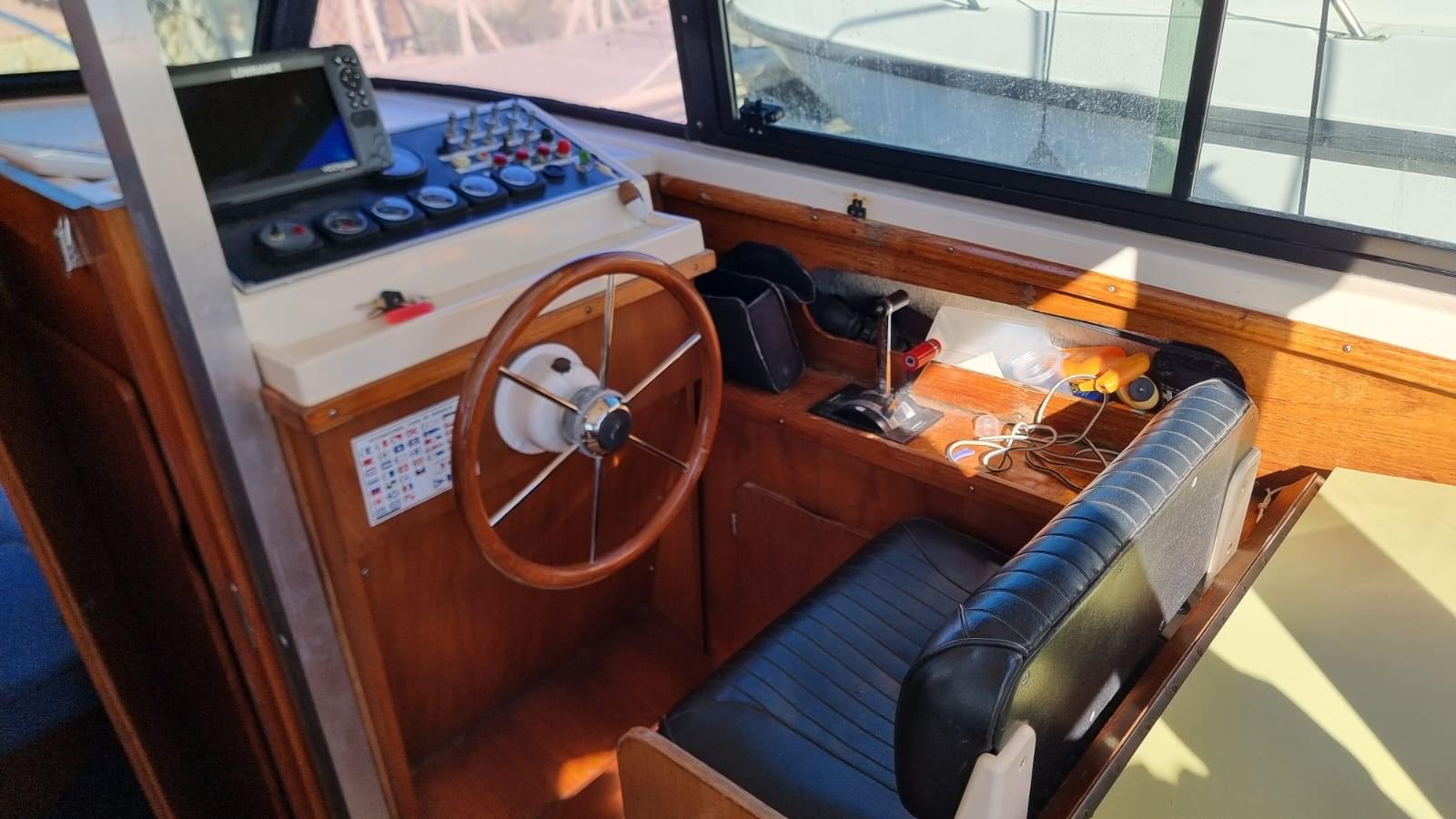 Alarme moteur, Eau sous pression, Douche de cockpit, Pompe de cale automatique, Porte latérale, Prise de quai, Guindeau électrique, Echelle de bain, Corne.