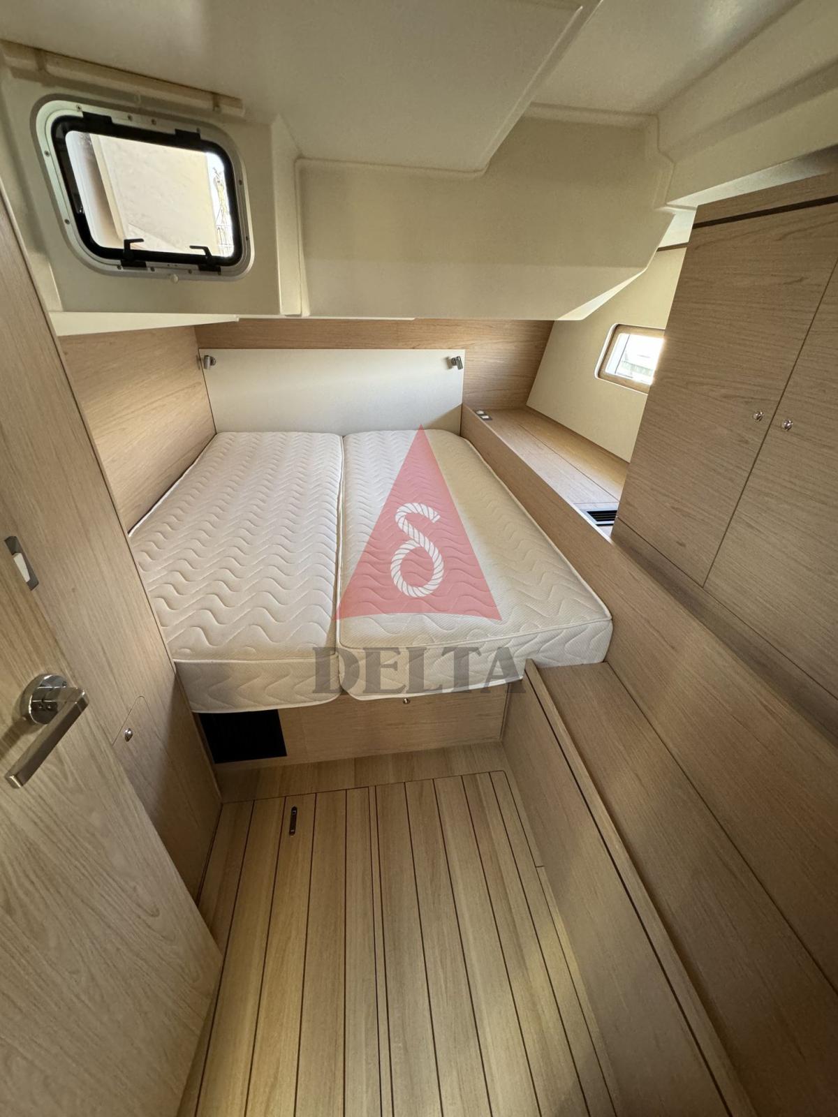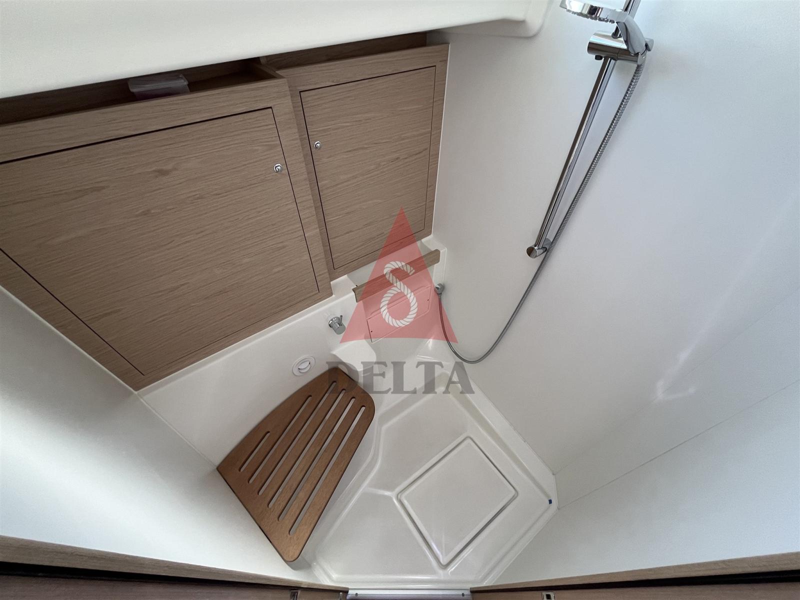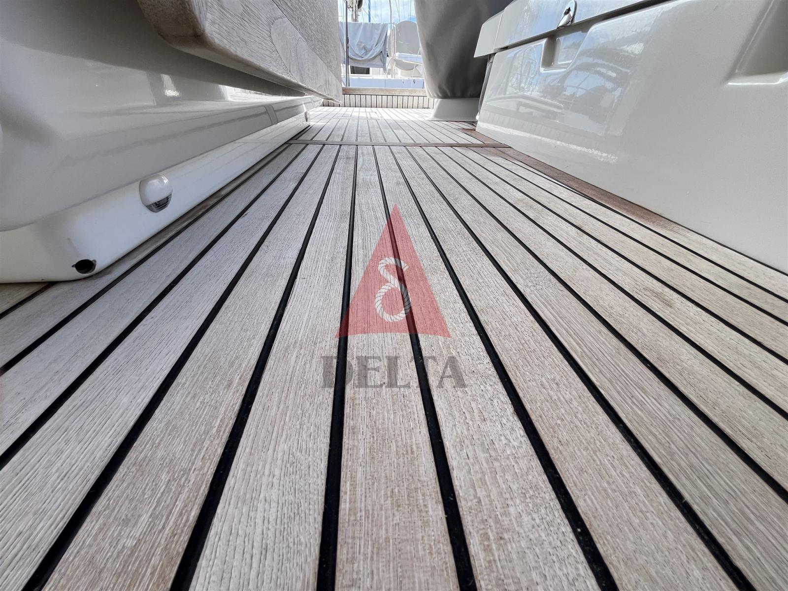 Ancre (Inox Ultra 27Kg), Eau sous pression, 4 Batteries (1 Motore + 3 Servizi AGM 140Ah), Douche de cockpit, Double barre à roue, Bossoir pour HB, Bossoirs pour annexe, Éclairage de courtoisie, Passerelle, Plateforme arrière (Elettrica con telecomando), Pompe de cale automatique, Pompe de cale manuelle, Cockpit en teck, Prise de quai, Connexion eau sous pression à quai, Rollbar, Guindeau électrique (Comando in pozzetto), Gréement monotoron, Echelle de bain, Chaise support HB, table de cockpit, Filières avec sortie latèrale, 4 Winch électrique, Windex.
