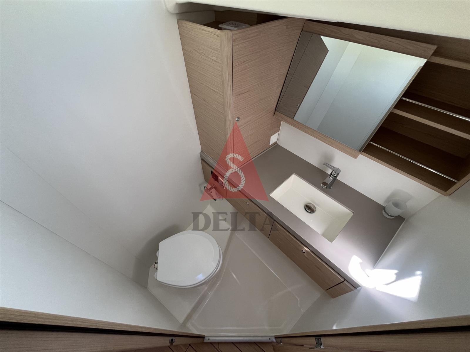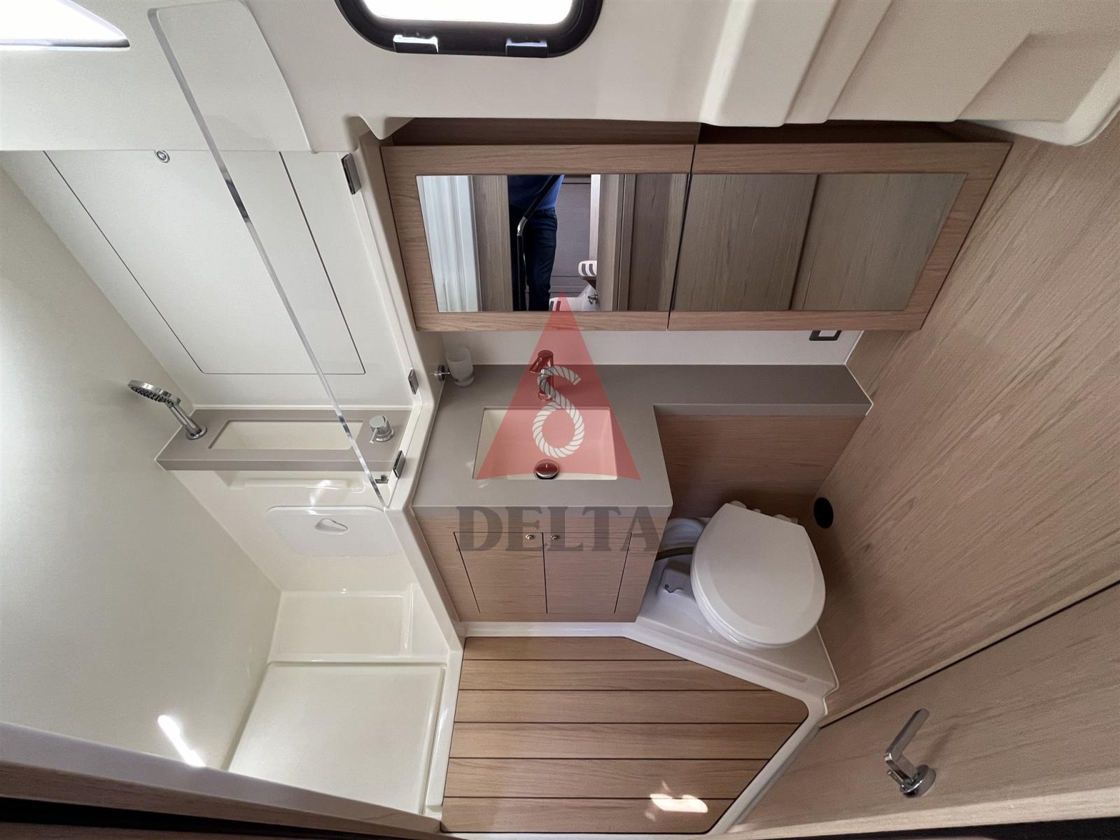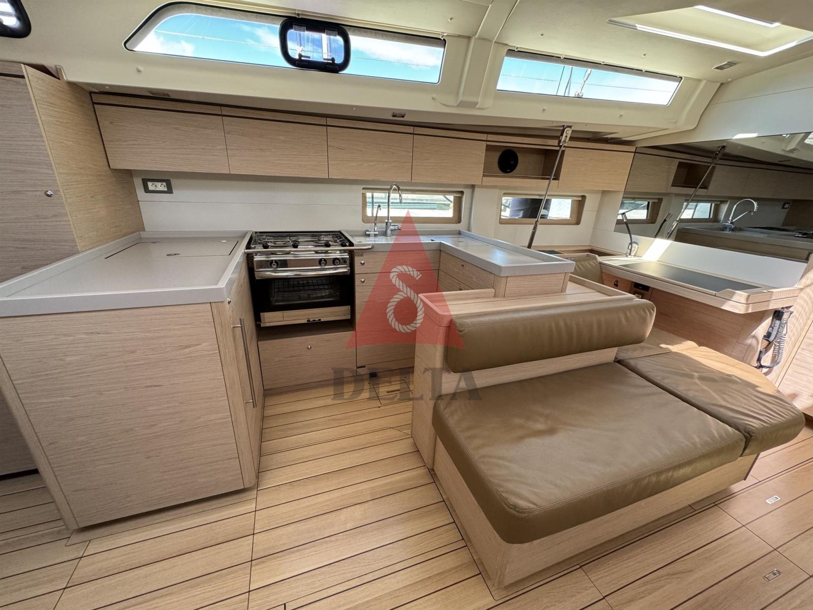 Ancre (Inox Ultra 27Kg), Eau sous pression, 4 Batteries (1 Motore + 3 Servizi AGM 140Ah), Douche de cockpit, Double barre à roue, Bossoir pour HB, Bossoirs pour annexe, Éclairage de courtoisie, Passerelle, Plateforme arrière (Elettrica con telecomando), Pompe de cale automatique, Pompe de cale manuelle, Cockpit en teck, Prise de quai, Connexion eau sous pression à quai, Rollbar, Guindeau électrique (Comando in pozzetto), Gréement monotoron, Echelle de bain, Chaise support HB, table de cockpit, Filières avec sortie latèrale, 4 Winch électrique, Windex.