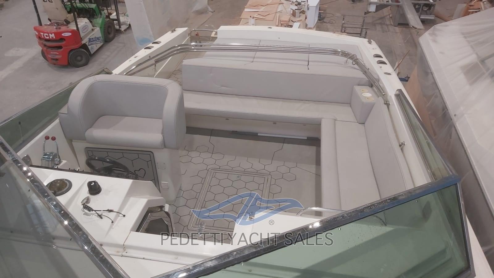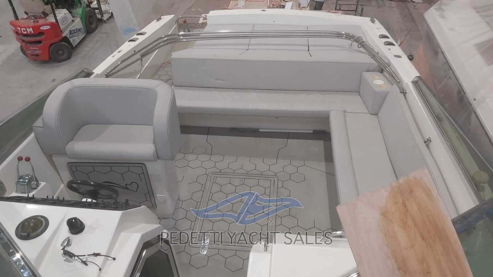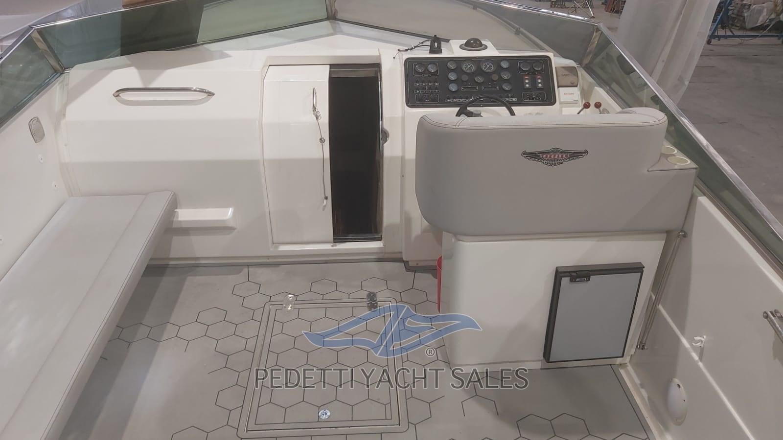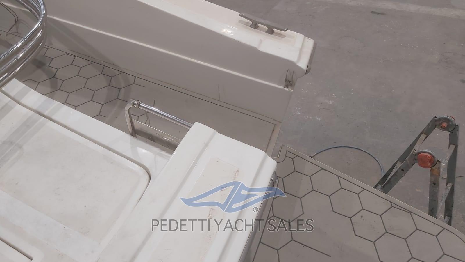 Alarme moteur, Alarme de pompe de cale, Eau sous pression, 3 Batteries, Douche de cockpit, Flaps hydrauliques, Extincteur(s) fixe(s), Plateforme arrière, Pompe de cale automatique, Pompe de cale manuelle, Porte latérale, Prise de quai, Onduleur, Guindeau électrique, Echelle de bain, table de cockpit, Corne.