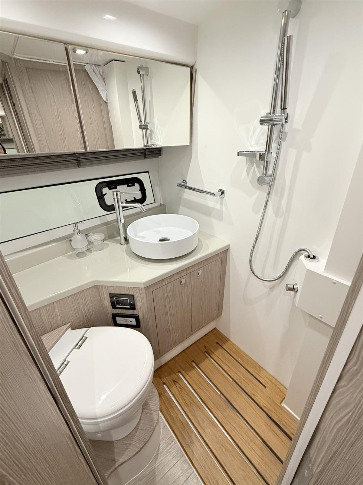 Ballon d'eau chaude, Air Conditionné (cabina e pozzetto), Cuve à eaux noires, Plancher intérieur en bois, Prises interieures 12v, Prises interieures 220v, Réservoir d'eau noire, 2 Toilettes électriques.
