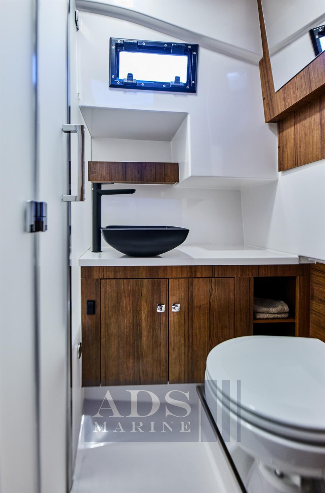 -Cabine WC à tribord avec toilettes électriques, trappe ouvrible, lavabo et cabine de douche