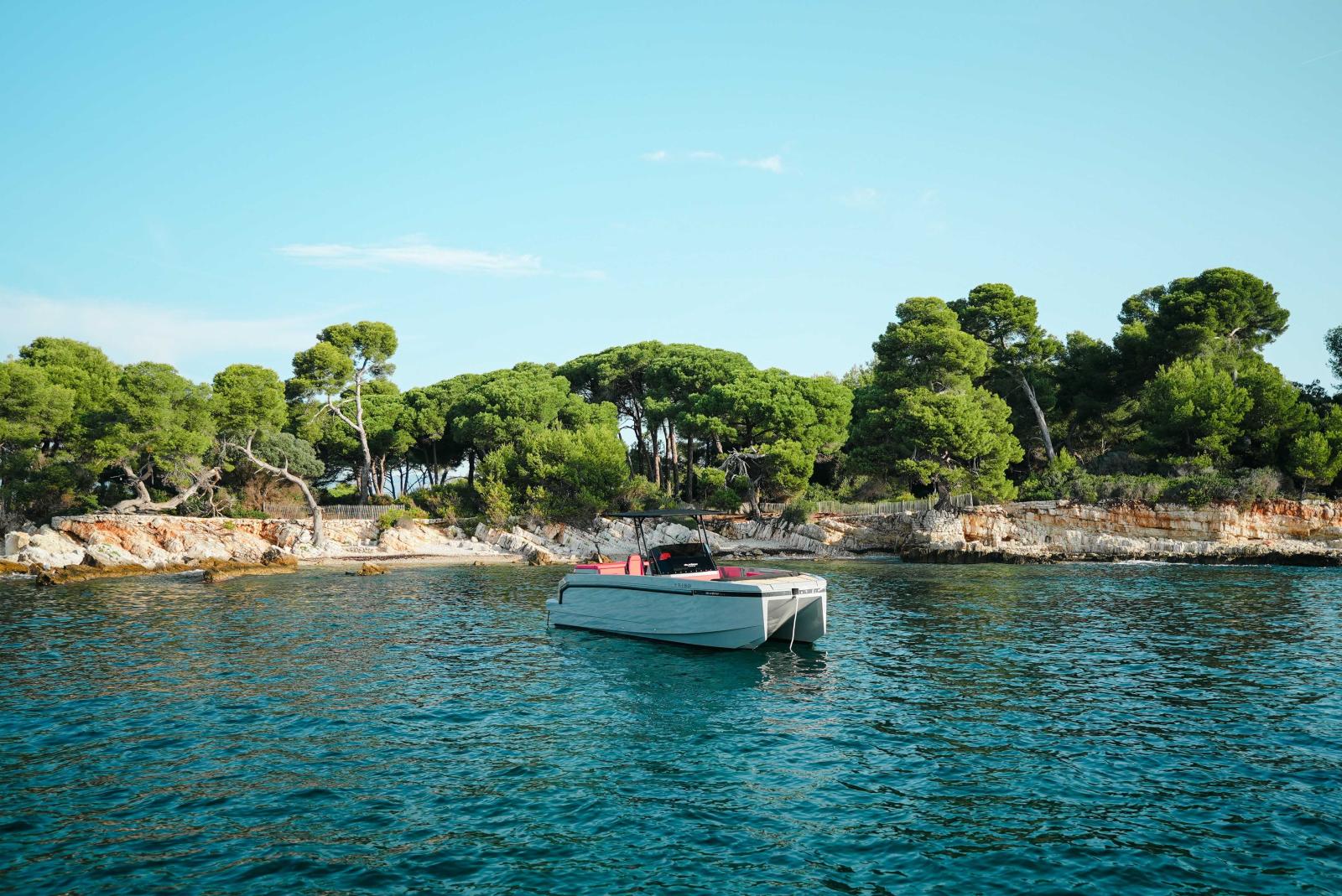 Evasion Yachting, importateur De Antonio Yachts Méditerranée et l'Atlantique, vous propose de découvrir le D23. Construit avec la même carène catamaran que le E23, de 7.20m de longueur HT par 3.20m de large, il est équipé d'un moteur hors-bord 115CV.