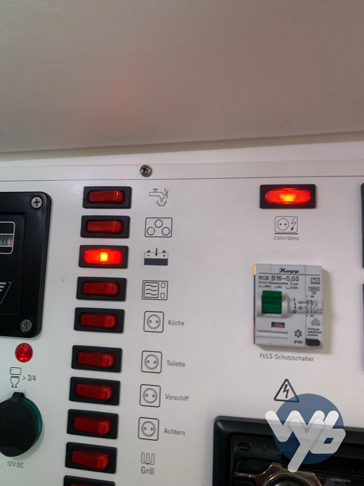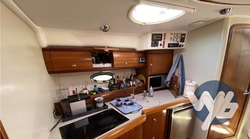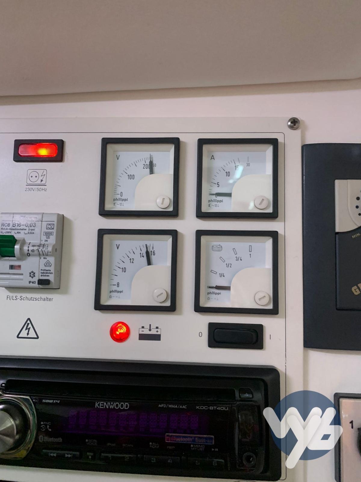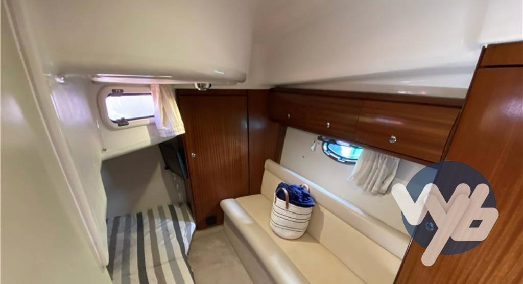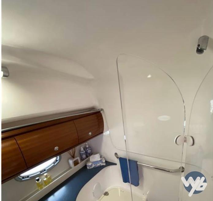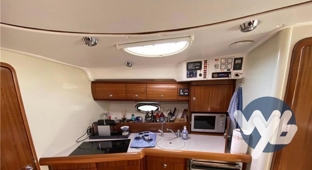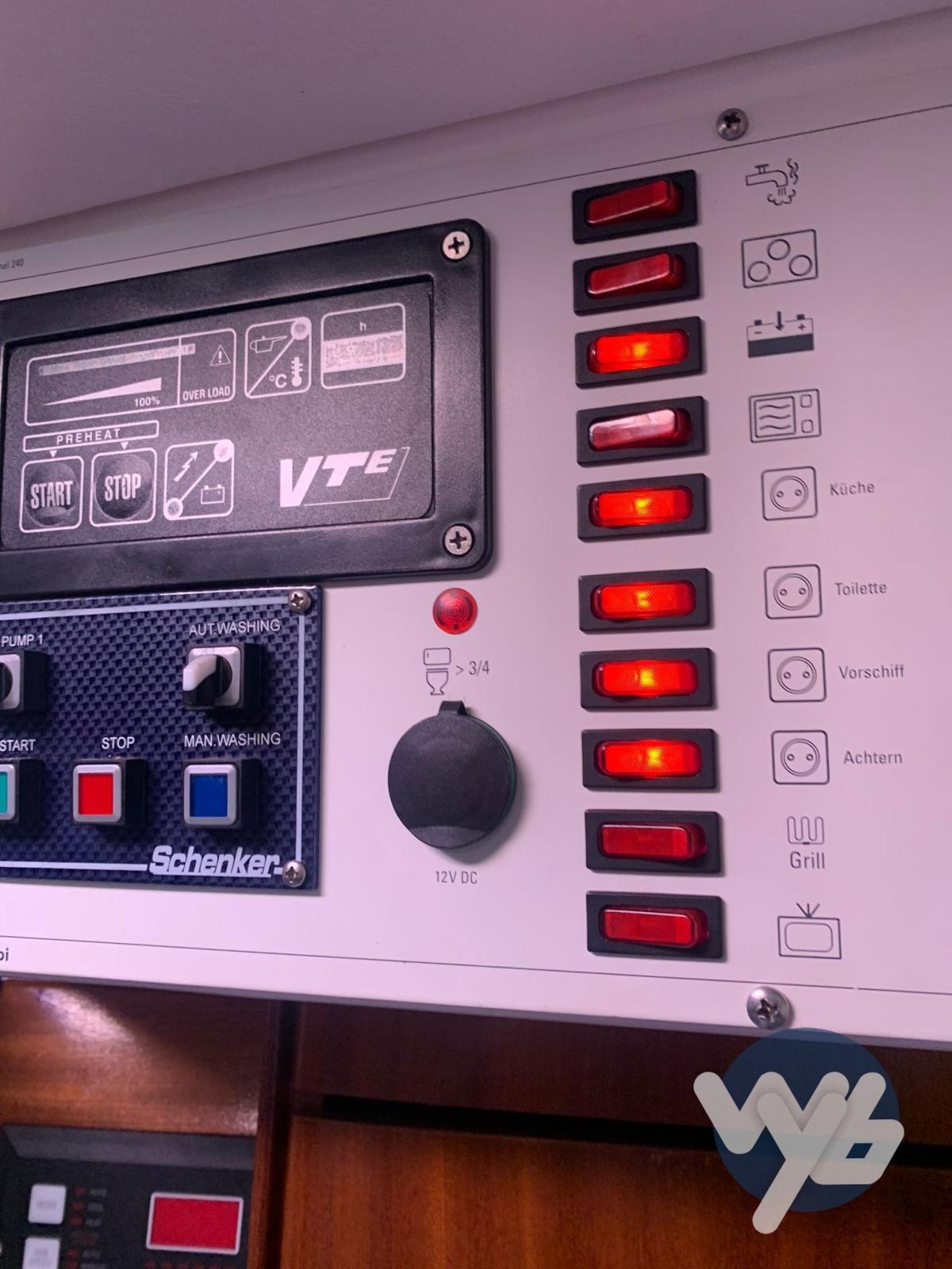Alarme moteur, Alarme de pompe de cale, Eau sous pression, Douche de cockpit, Phare de poursuite, Flaps hydrauliques, Garage à annexe, Passerelle, Pompe de cale manuelle, Prise de quai, Onduleur, Rollbar, Guindeau électrique, Echelle de bain.