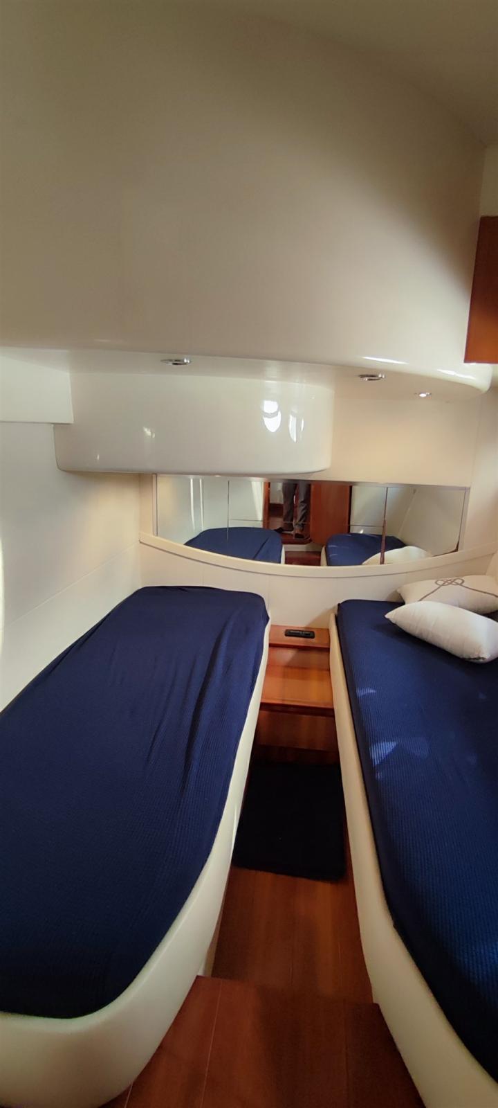 Alarme moteur, Alarme de pompe de cale, Eau sous pression (Nuova 2023), 4 Batteries, Douche de cockpit, Propulseur d'étrave (Nuova 2023), Éolienne, Hard top, Indicateurs de flaps, Éclairage de courtoisie, Passerelle (idraulica), Pompe de cale automatique, Cockpit en teck, Prise de quai, Connexion eau sous pression à quai, Guindeau électrique, table de cockpit, T-Top, Winch électrique arrière.