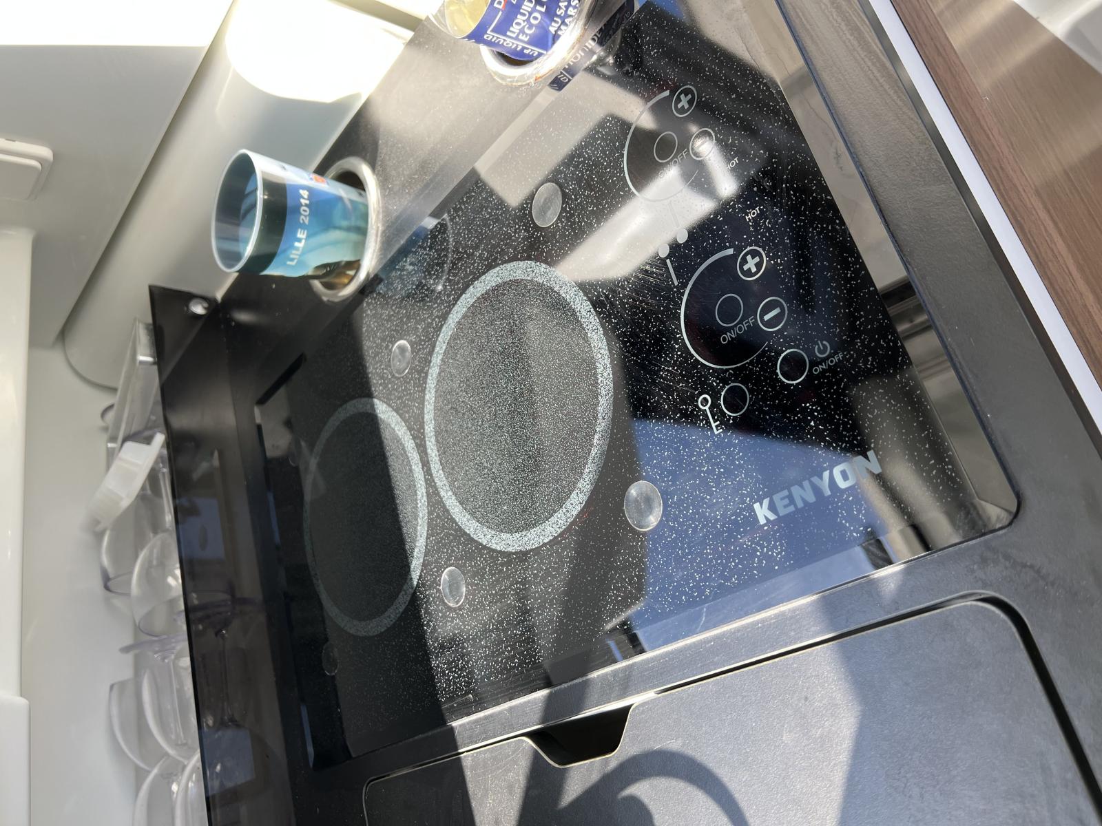 (plan de travail ave finition en Arpa noir, 2 porte-verres inox, plaque vitrocéramique)