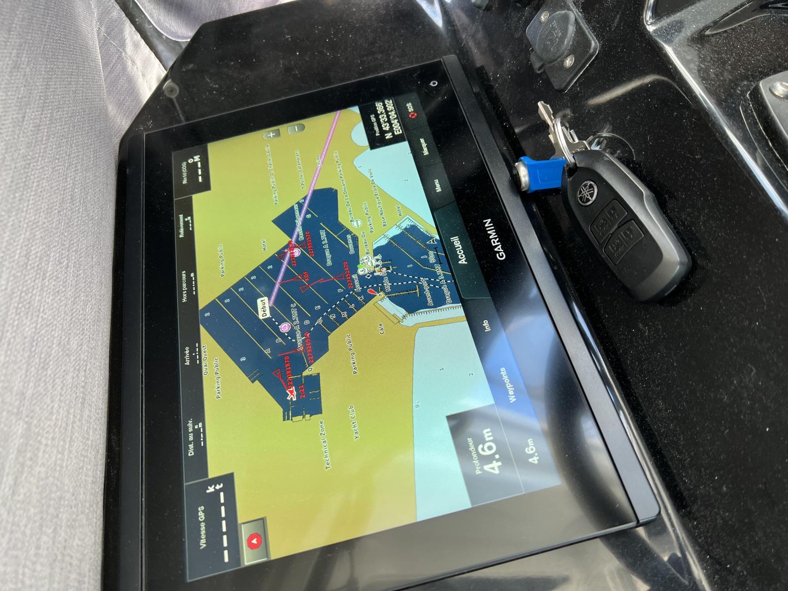 INCLUANT : manette électrique 6X9 Drive-by-wire flush side-mount, trim automatique, écran tactile couleur CLS, clef sans contact EKS