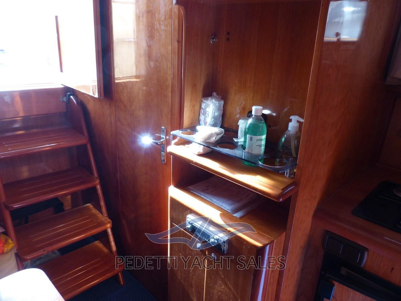 Eau sous pression, Passavant en teck, Douche de cockpit, Phare de poursuite, Passerelle (idaraulica), Cockpit en teck, Prise de quai, Guindeau électrique, Echelle de bain, Table pliante de salon.