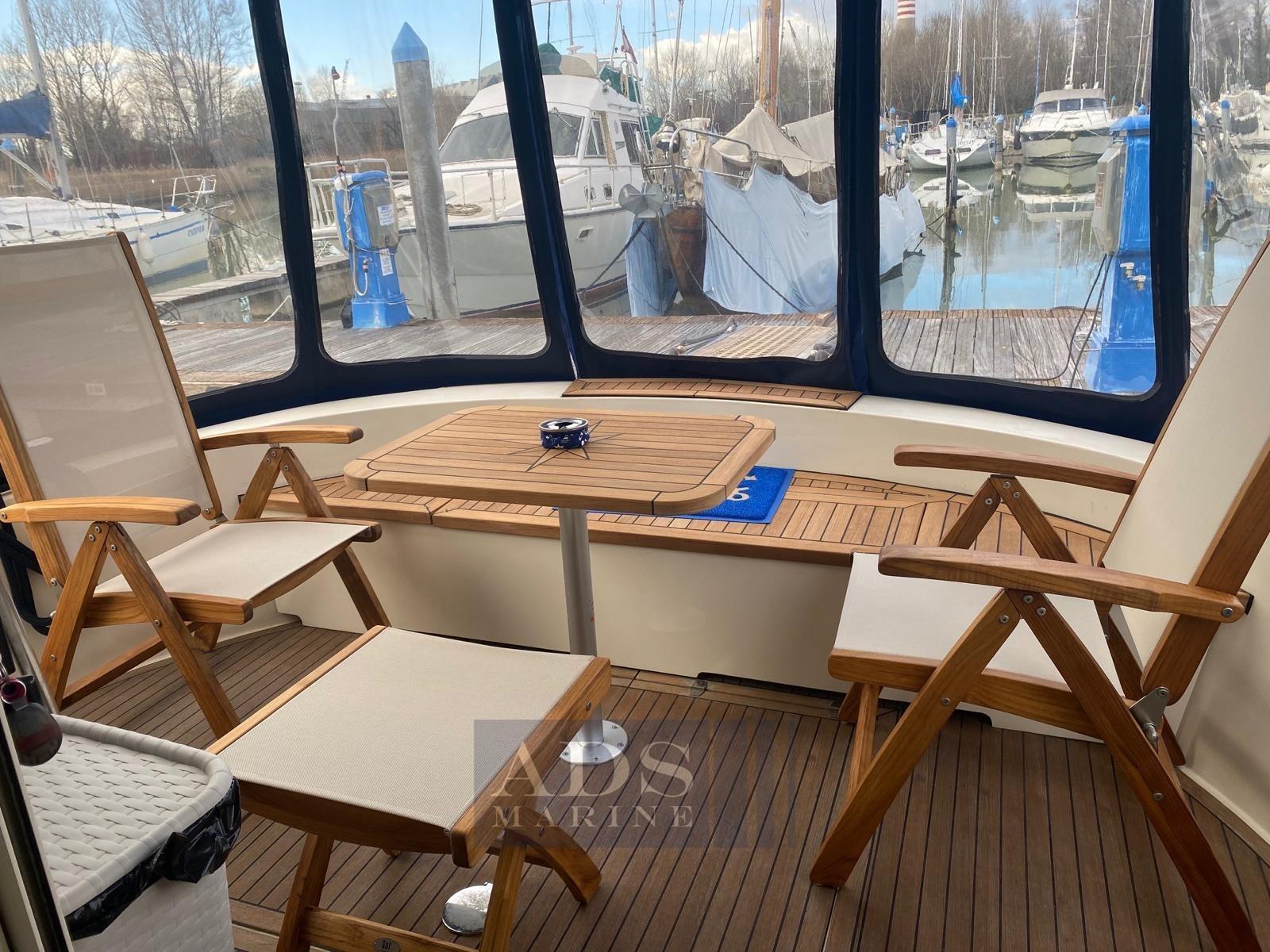 2021 : nouvelle sellerie dans le cockpit/fly, nouvelle housse d’hiver, nouveaux coussins de bronzage, nouvelle table et chaises dans le cockpit (teck)