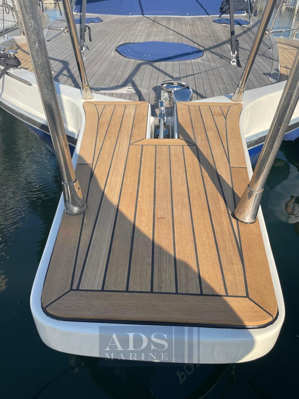 2023 : nouveau teck partout, nouvelles lumières sous-marines, protection UV folia sur les fenêtres, nouveaux instruments de navigation, pilote automatique, traceur de cartes