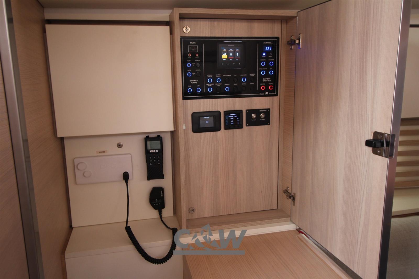 Antenne radar, Moniteur, DSC VHF (B&G V60), Pilote automatique (B&G Triton 2), Plotter GPS (9” Vulcano 9).