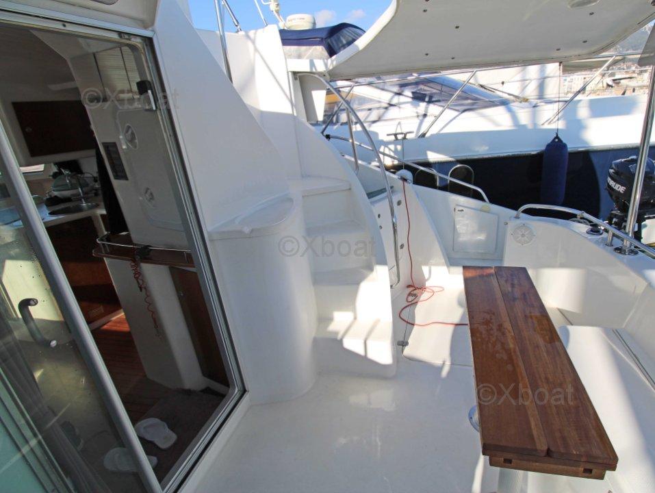 Les manœuvres de port sont facilitées par les commandes moteurs électriques au fly et au poste de barre intérieur. Le bateau est motorisé avec 2 x 110 CV, qui permettent une vitesse de croisière de 12 nœuds, avec une consommation très faible (12 à 14 litres/heure).