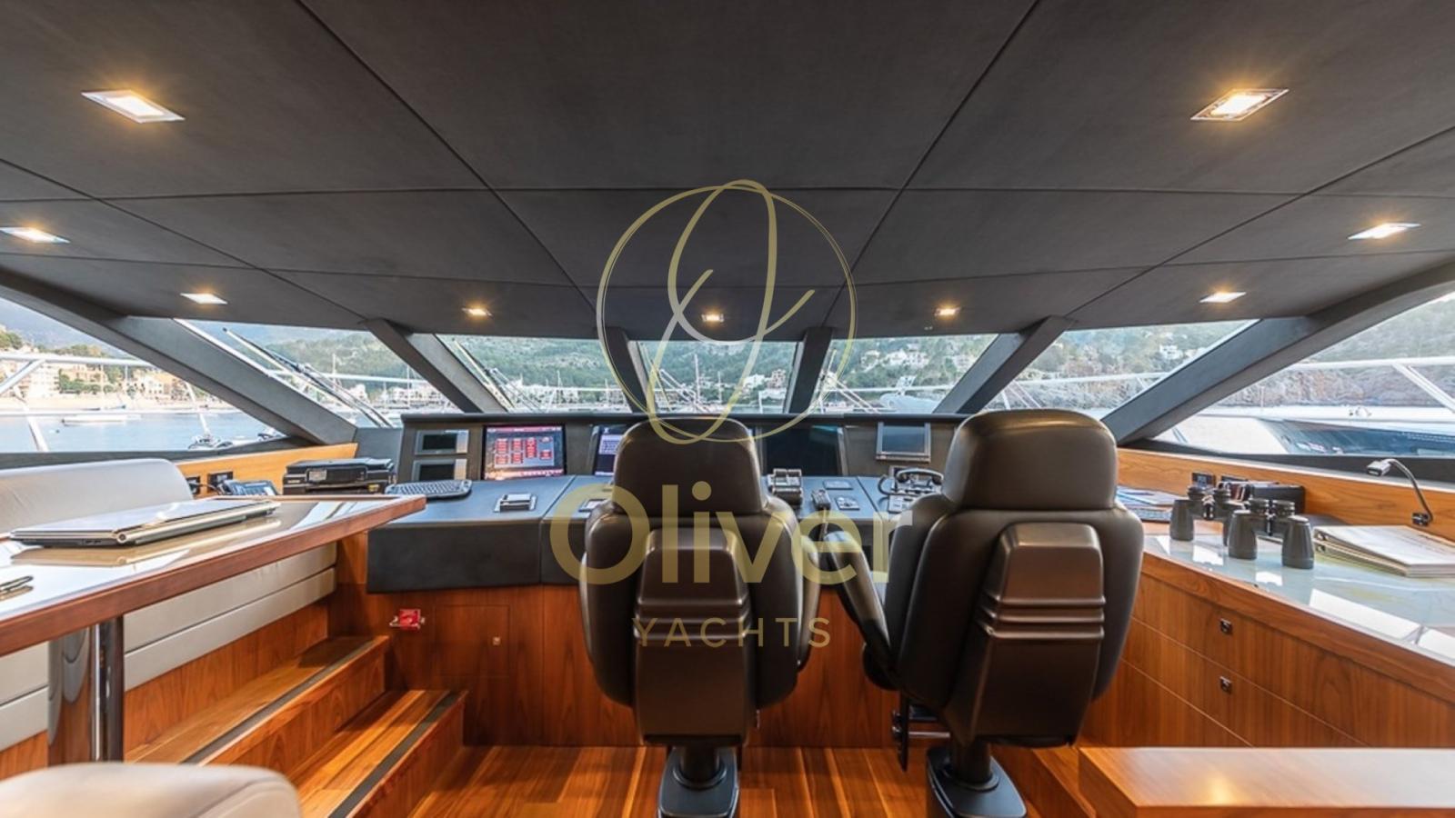 Alarme gaz, Alarme moteur, Alarme de pompe de cale, Eau sous pression, Taquets pliants, Système de vidange, Passavant en teck, Douche de cockpit, Double barre à roue, Phares fixes arrière, Flaps hydrauliques, Garage à annexe, Extincteur(s) fixe(s), Compresseur de plongée, Indicateurs de flaps, Lavage de chaine, Lavabo dans le cockpit, Éclairage de courtoisie, Spots sous-marins, Jet-ski, Passerelle, Plateforme arrière, Pompe de cale automatique, Pompe de cale manuelle, Porte latérale, Porte latérale, Cockpit en teck, Prise de quai, Connexion eau sous pression à quai, Onduleur, Répétiteur électronique, Rollbar, Guindeau Hydraulique, Echelle de bain, Selles pour Annexe, Système de filtration des eaux usées, Stabilisateurs, table de cockpit, Annexe, Filières avec sortie latèrale, Corne, T-Top, Pont en teck, Winch électrique arrière, Winch électrique avant.