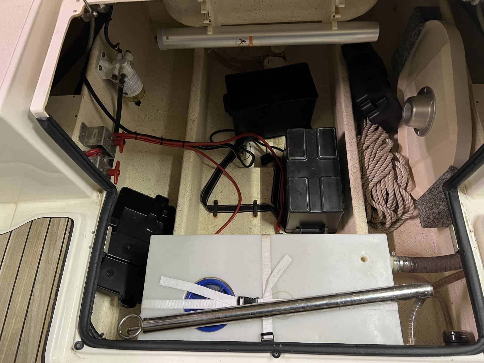 OPTIONS : Cockpit et plateforme de bain en teck, Réfrigérateur WAECO, Mat de ski, Hélice Inox, guindeau éléctrique, table de cockpit, x 2 batteries, bimini…
