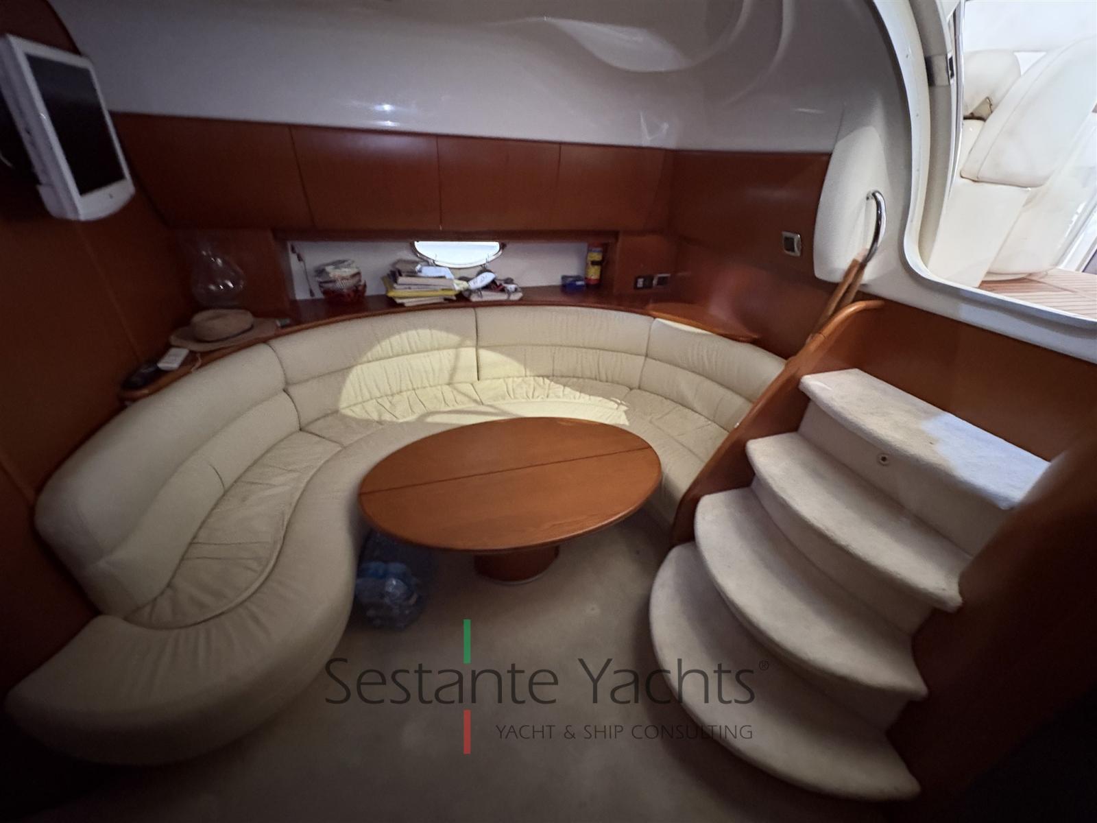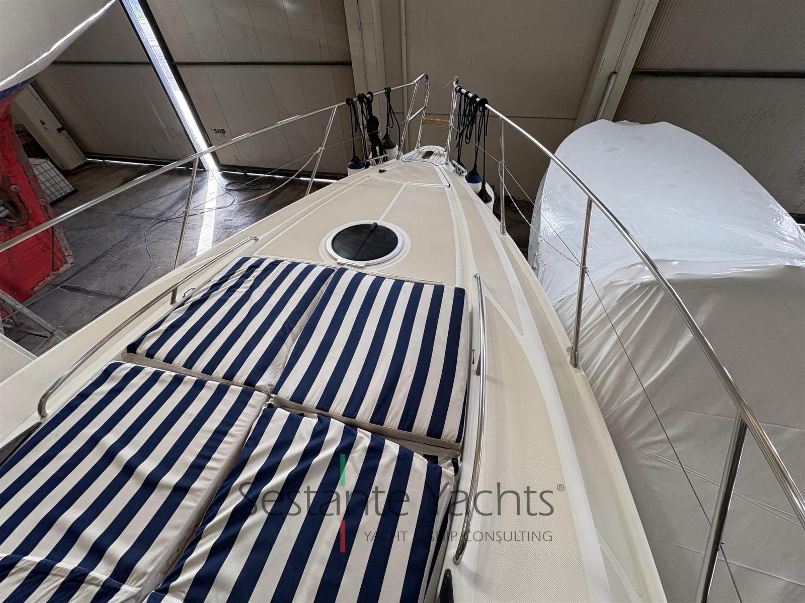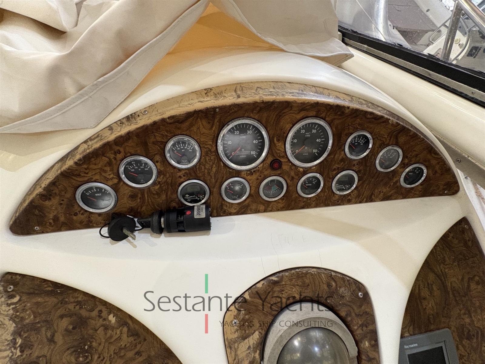 Eau sous pression, Douche de cockpit, Phare de poursuite, Flaps électriques, Lavabo dans le cockpit, Éclairage de courtoisie, Passerelle (Besenzoni), Pompe de cale automatique, Pompe de cale manuelle, Porte latérale, Cockpit en teck, Prise de quai, Onduleur, Rollbar, Guindeau électrique, Echelle de bain, Selles pour Annexe, table de cockpit, Corne, T-Top.
