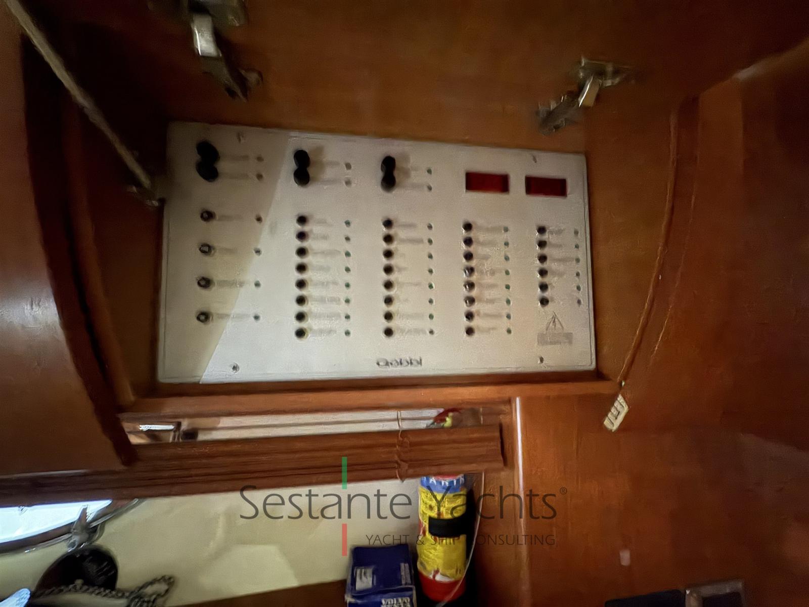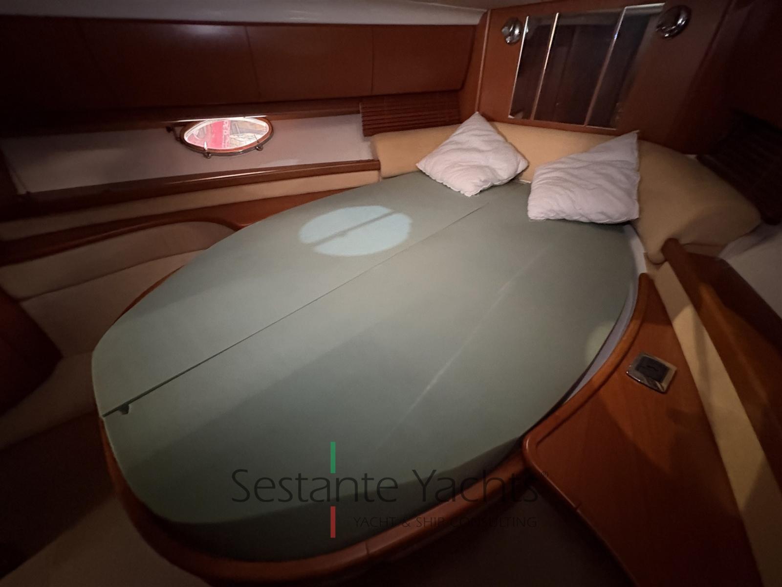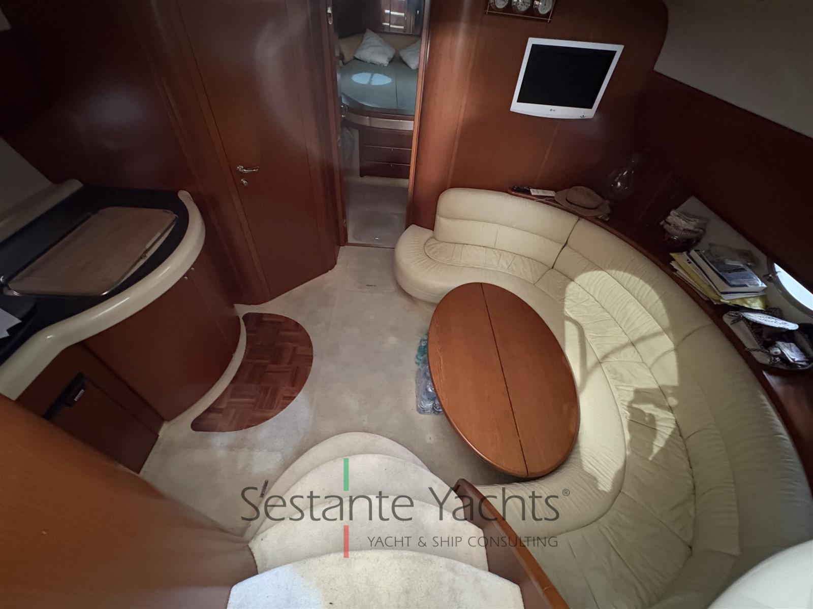 Eau sous pression, Douche de cockpit, Phare de poursuite, Flaps électriques, Lavabo dans le cockpit, Éclairage de courtoisie, Passerelle (Besenzoni), Pompe de cale automatique, Pompe de cale manuelle, Porte latérale, Cockpit en teck, Prise de quai, Onduleur, Rollbar, Guindeau électrique, Echelle de bain, Selles pour Annexe, table de cockpit, Corne, T-Top.