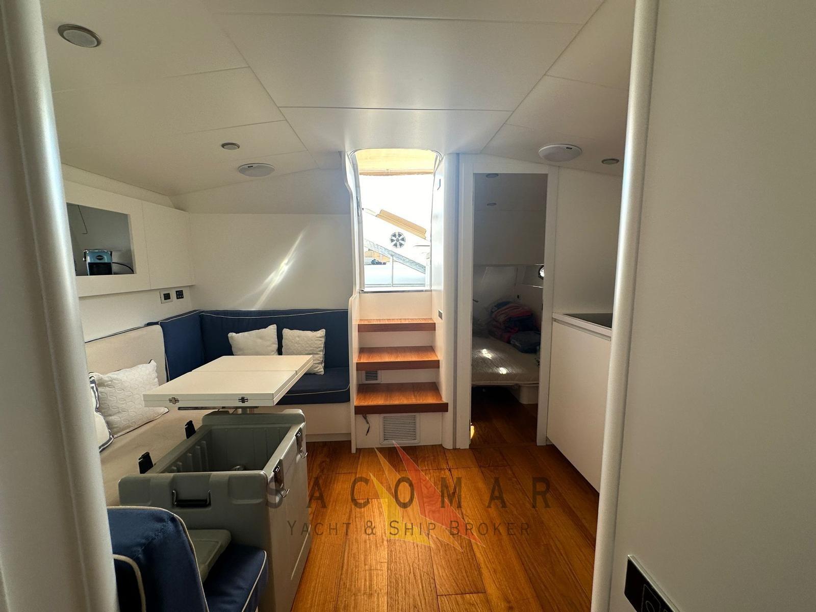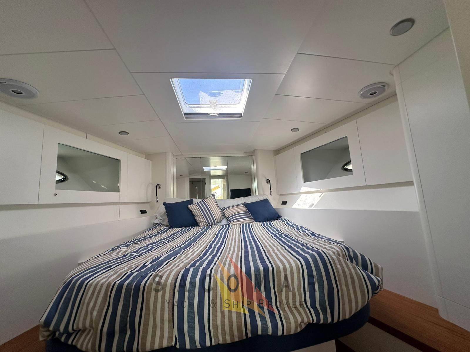 Coussins 2022, sellerie extérieure 2023, peinture et habillage 2023, échangeurs de chaleur 2023, échangeurs de moteur 2024, IPS révisé 2024, réservoir d’eaux grises, nouveaux moteurs de toilettes, plate-forme arrière hydraulique, bain de soleil, 2 seabobs