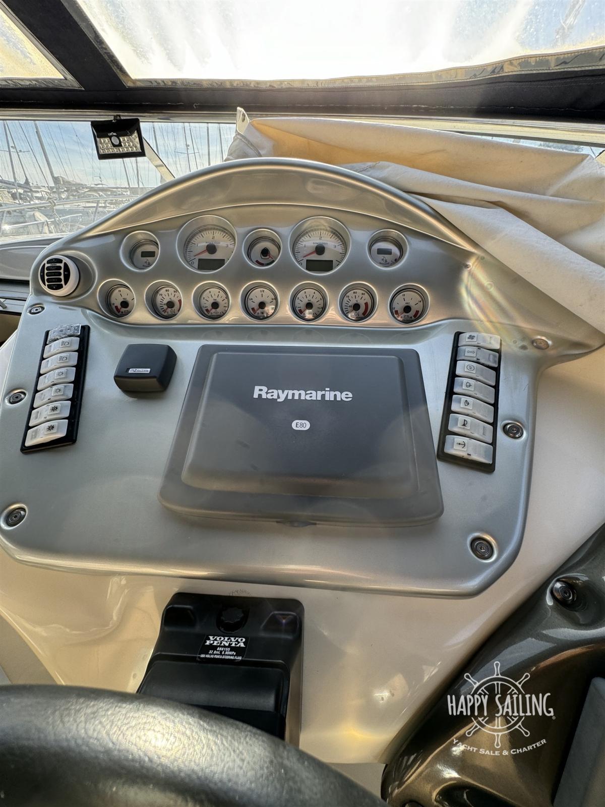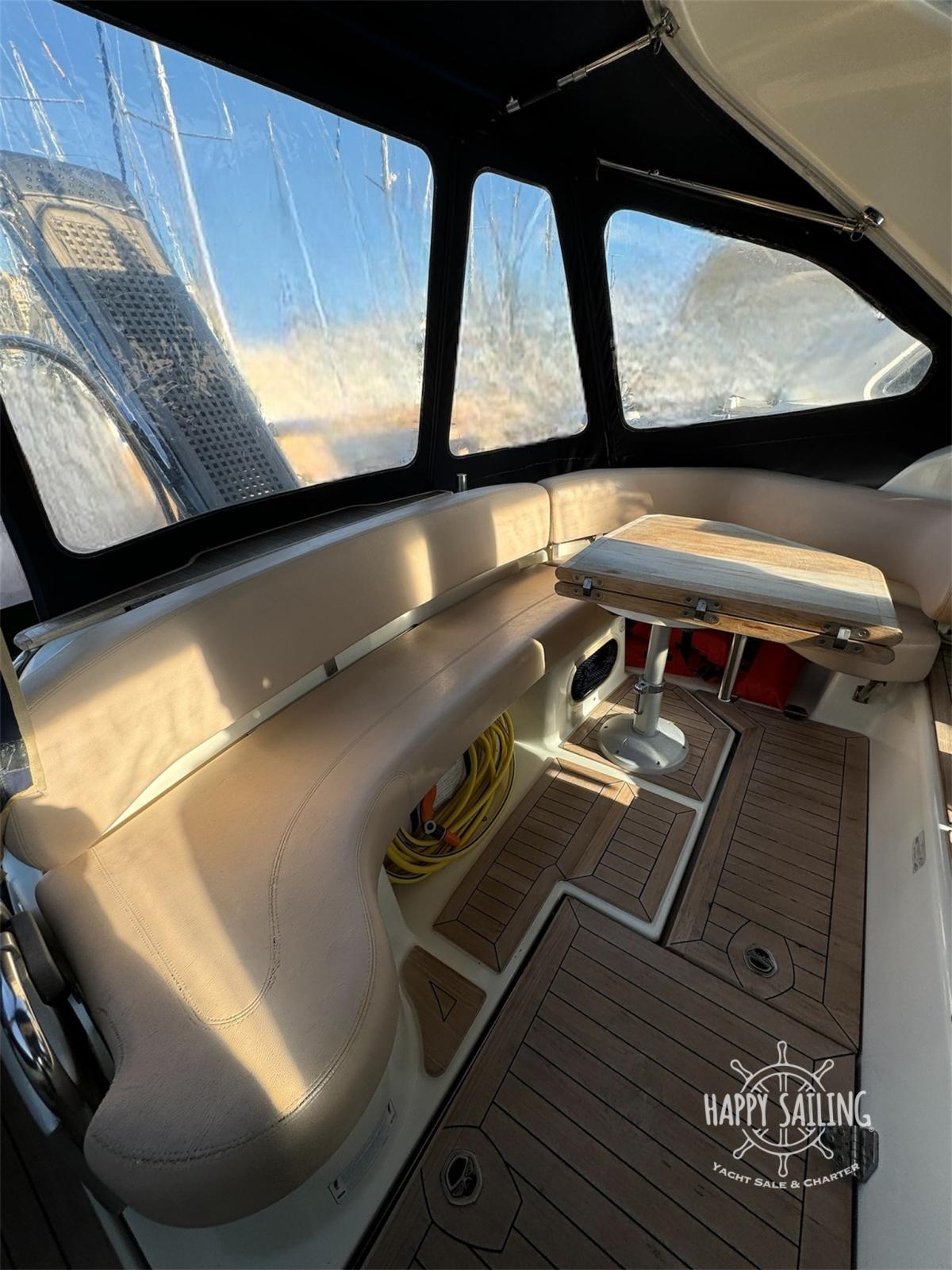 Alarme moteur, Eau sous pression, Douche de cockpit, Flaps électriques, Passerelle, Plateforme arrière, Pompe de cale automatique, Cockpit en teck, Rollbar, Guindeau électrique.