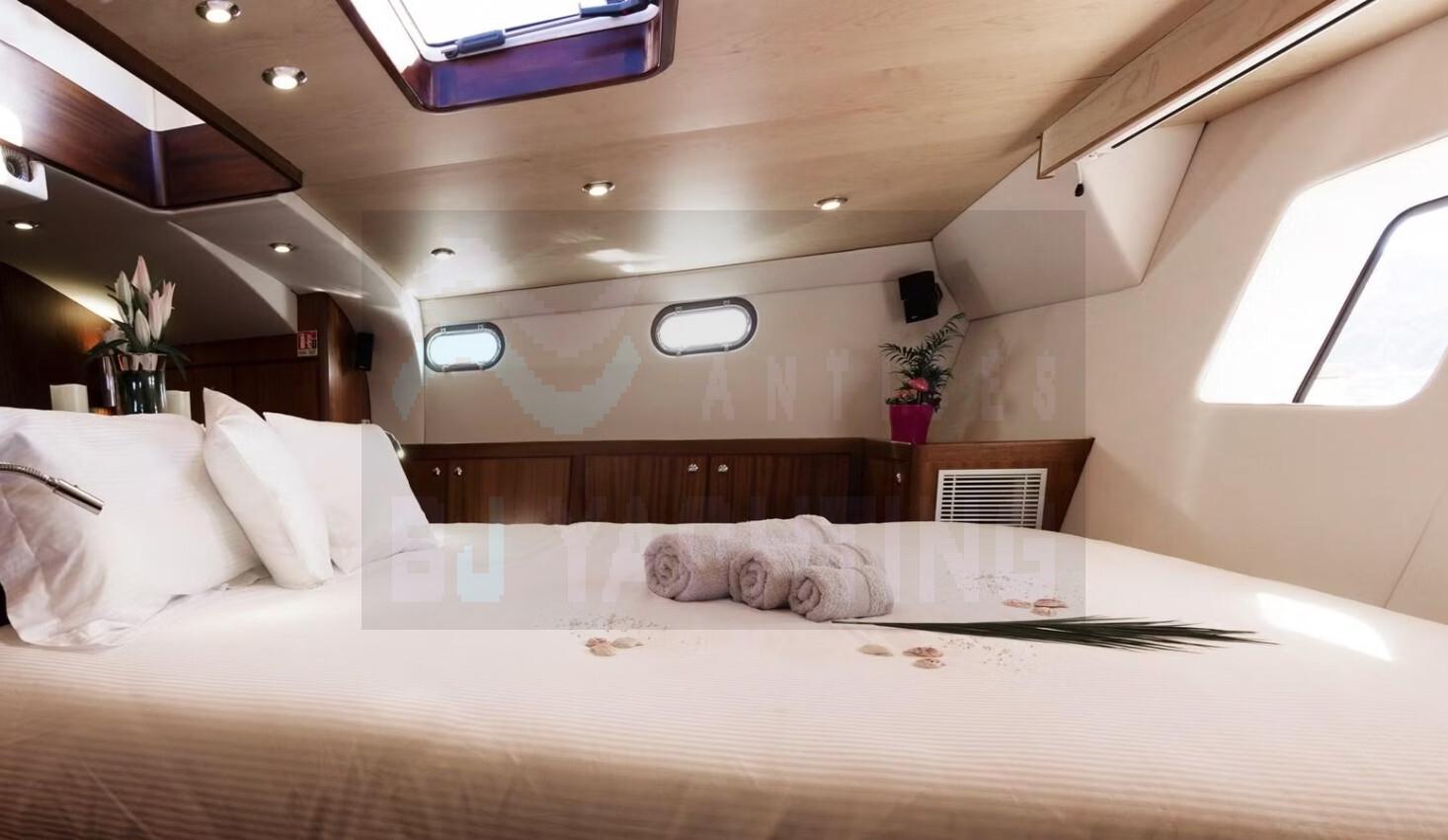 • Configuration des cabines : 1 Double, 1 Twin (convertible en Double) & 1 couchette (équipage ou enfants)